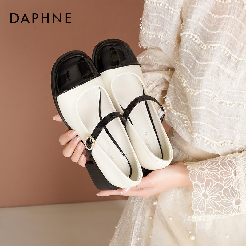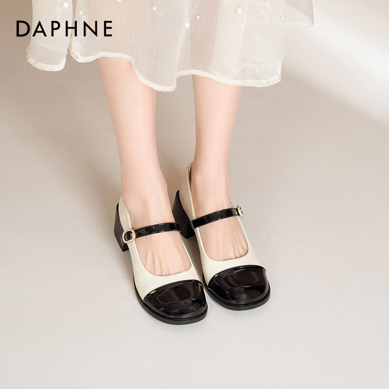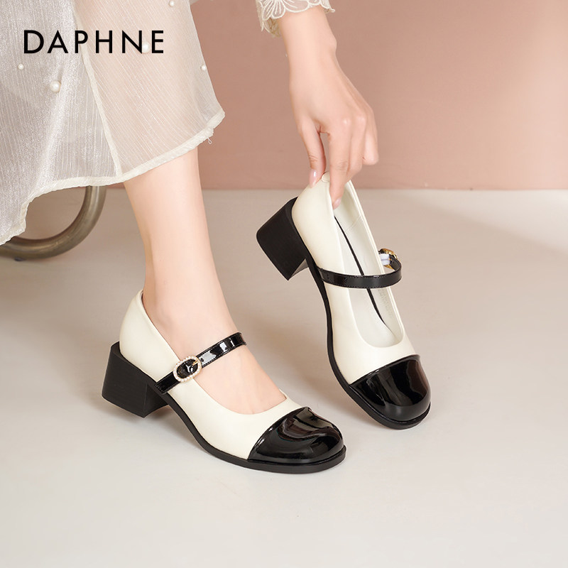 达芙妮法式玛丽珍鞋女2026春季新款黑白小香风高跟鞋粗跟浅口单鞋