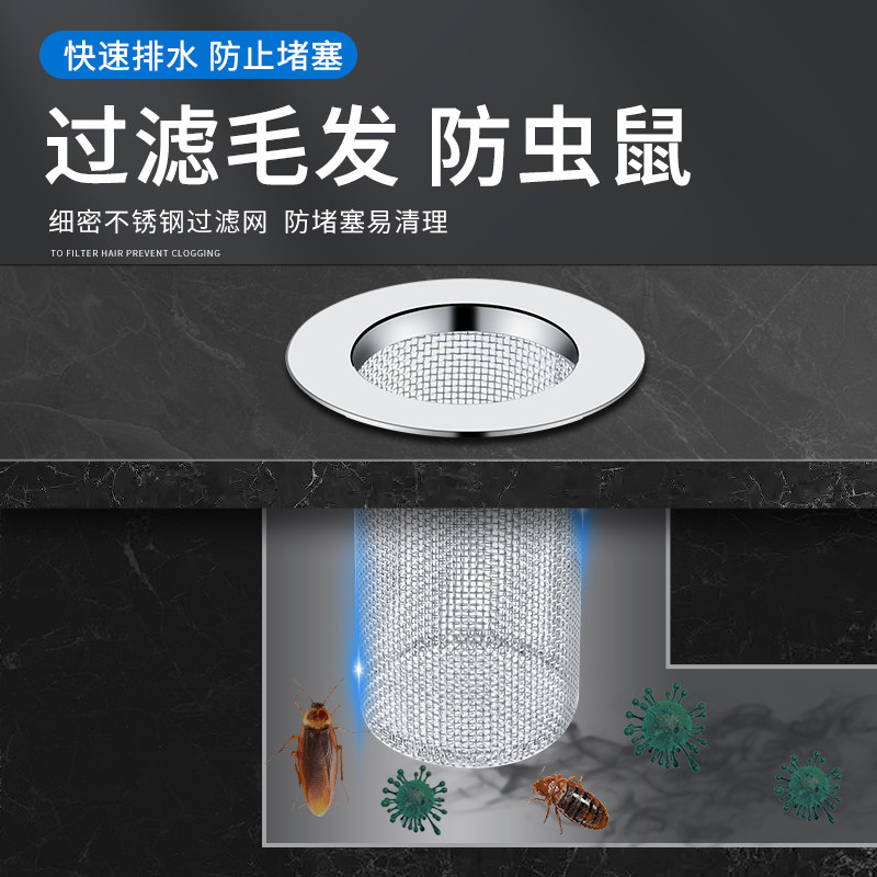 卫生间地漏毛发过滤网通用不锈钢面盆防浴室下水道厕所浴缸洗手盆