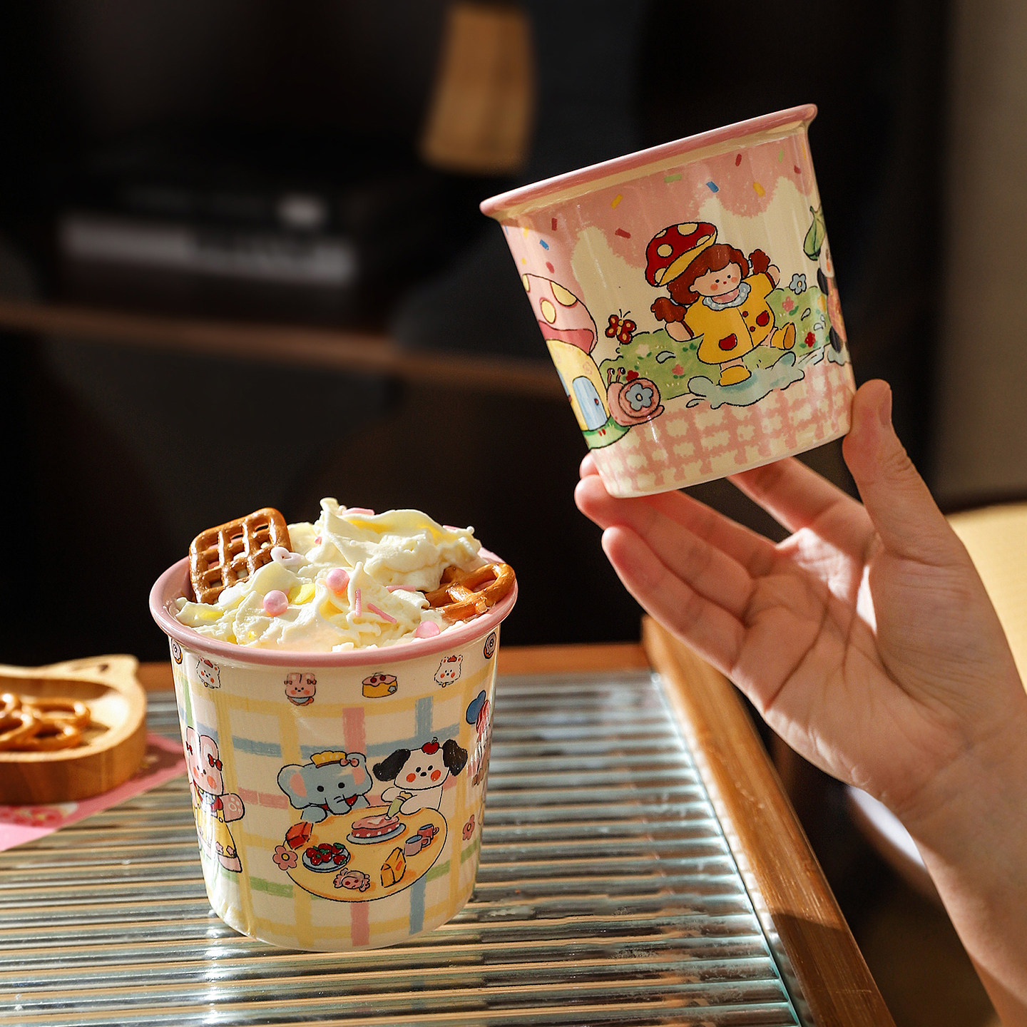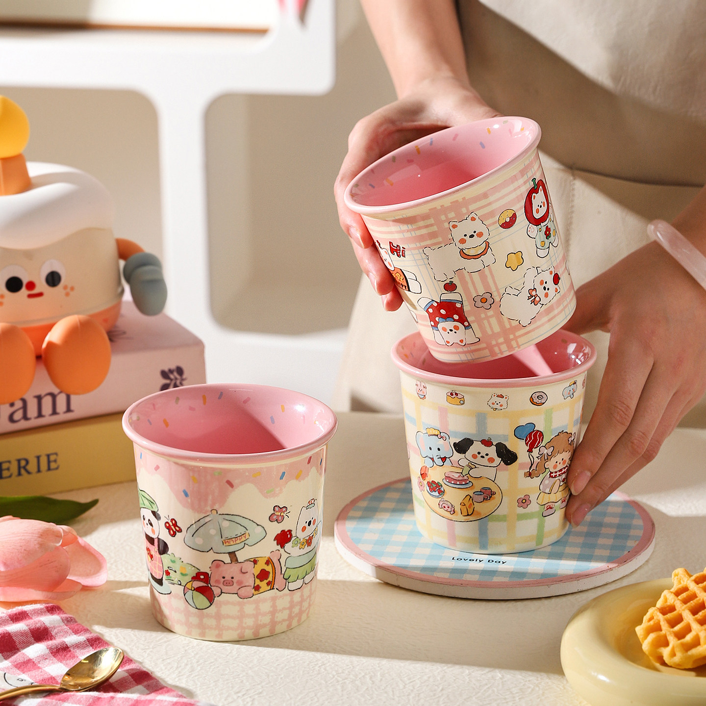 舍里可爱卡通陶瓷手握高颜值马克杯家用少女心牛奶咖啡杯儿童水杯