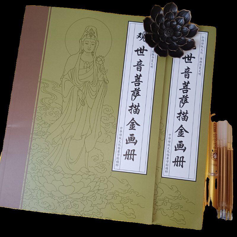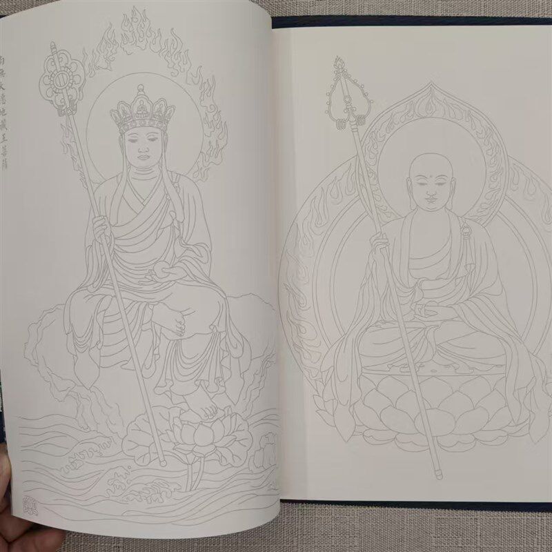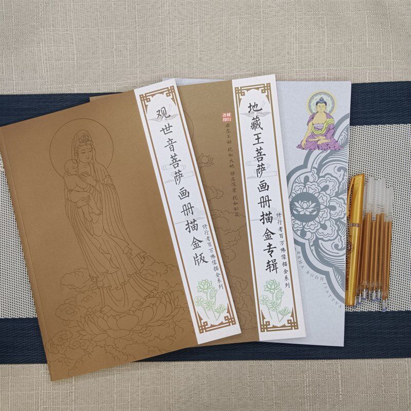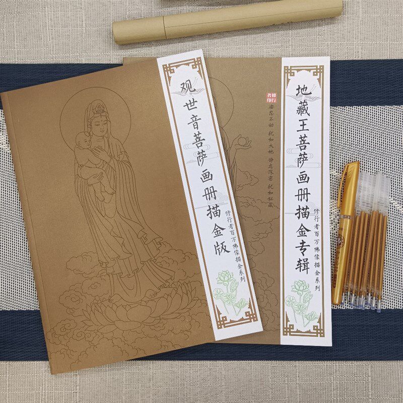 速发尊观音菩萨素藏王描金白描画册手绘抄地描线稿手本绘本