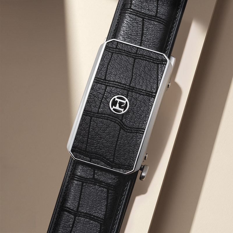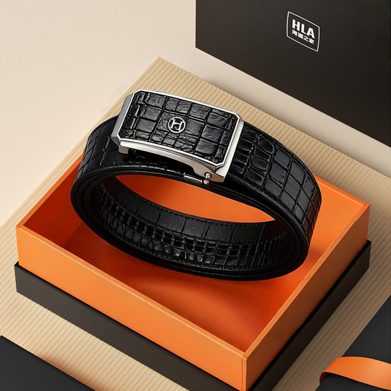 HLA/海澜之家皮带男士鳄鱼纹真皮自动扣腰带新款鹿皮面皮裤带礼盒