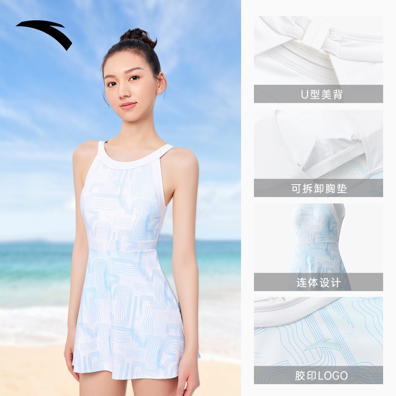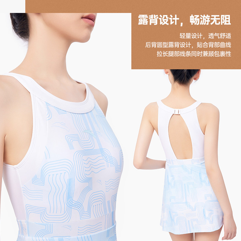 安踏小蛮腰丨女子裙式连体泳装一体式海边防晒弹力泳衣三角内衬