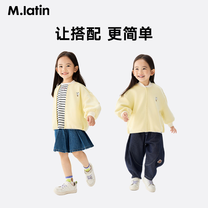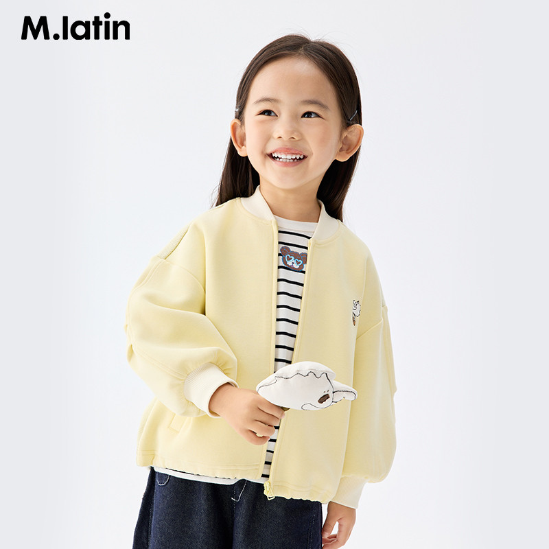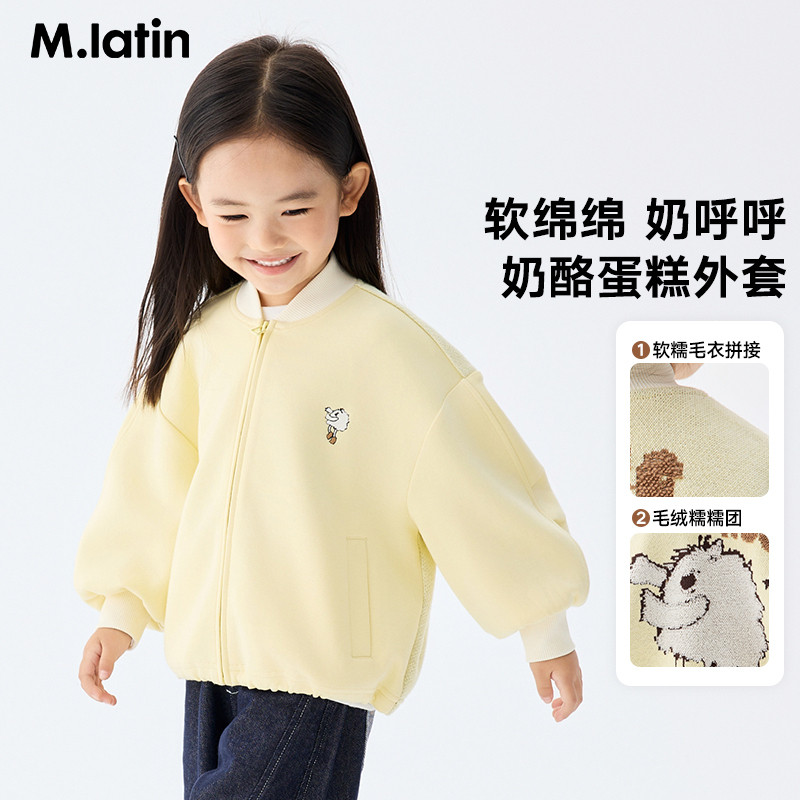 马拉丁儿童外套25秋季新款女小童抱抱兽毛巾绣毛线拼接棒球服