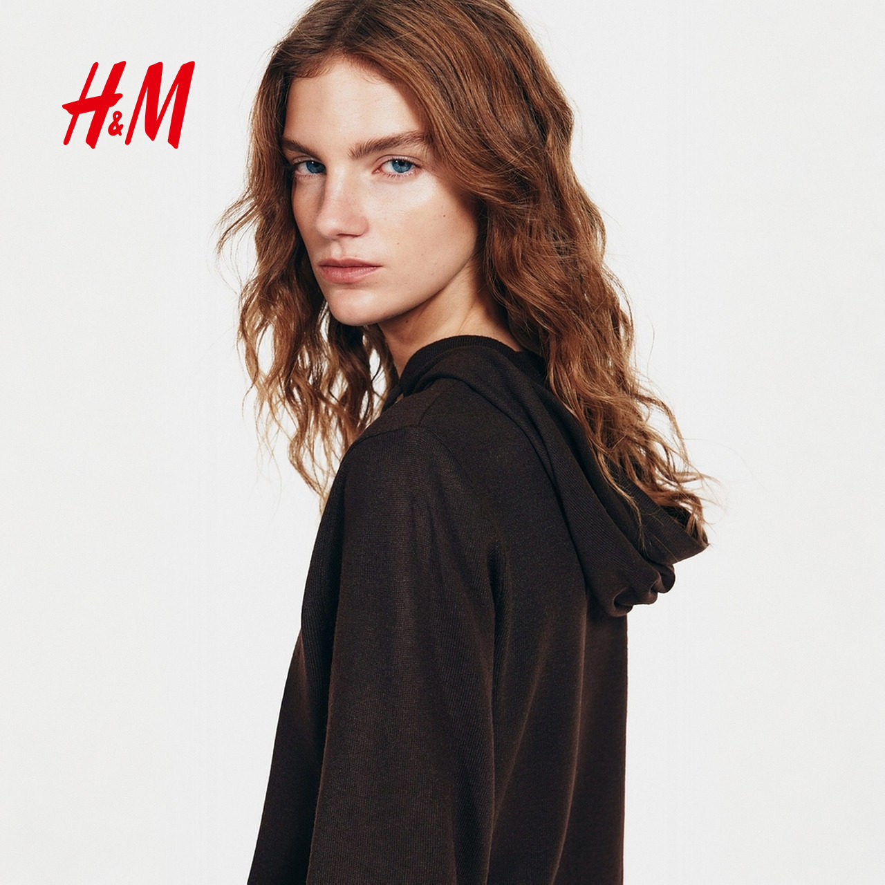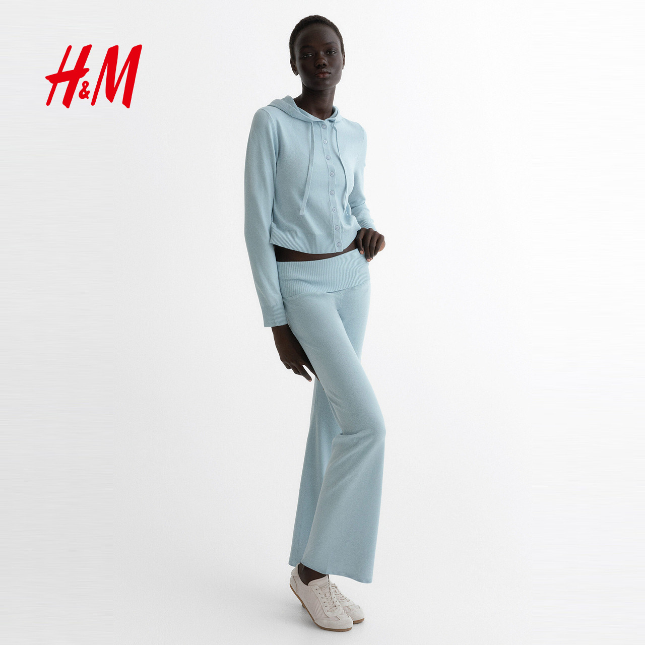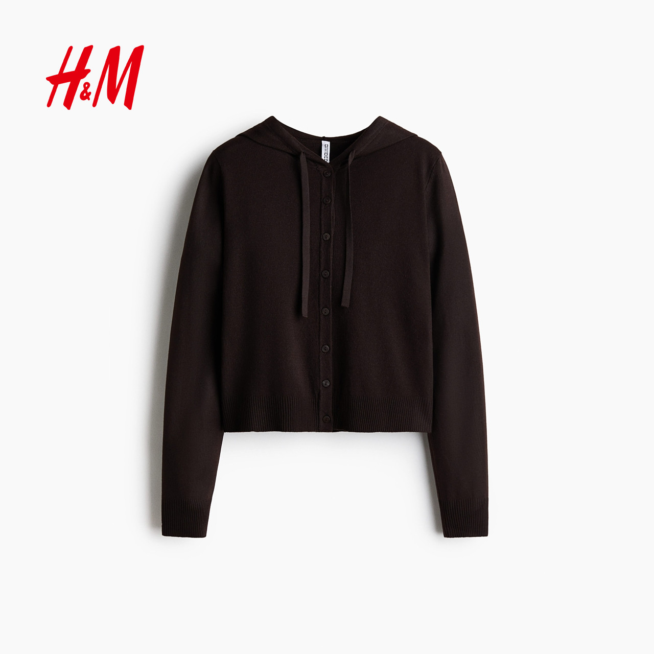 HM女装毛针织衫春季新款高智感针织衫连帽开衫保暖外套1312008