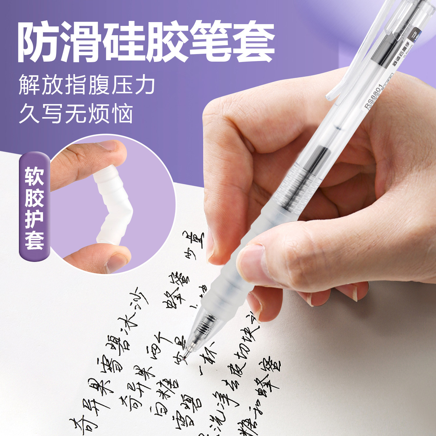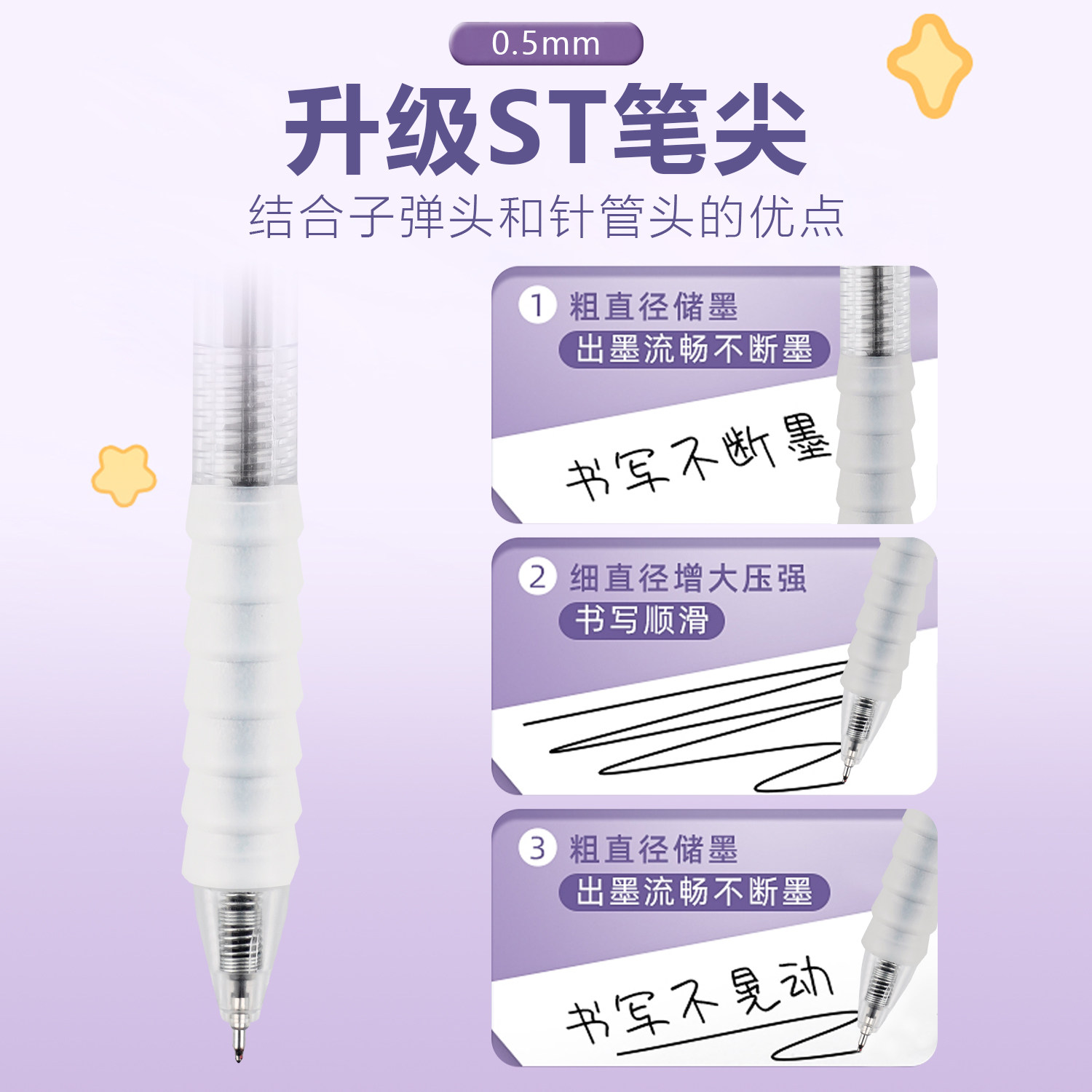 按动中性笔云握st笔头舒适软握刷题笔0.5mm黑色水笔碳素笔办公按压式软胶黑笔速干顺滑学生专用笔学生用批发