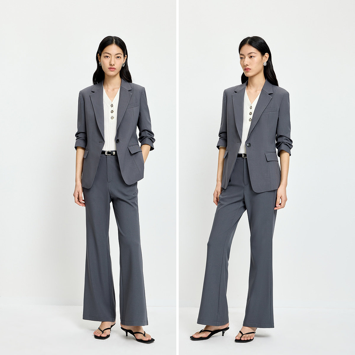 COCOBELLA灰色休闲设计感正肩西装外套女高智感通勤上衣SI3013