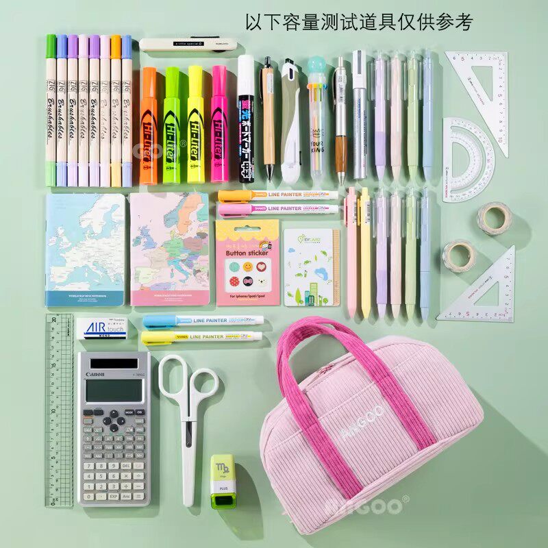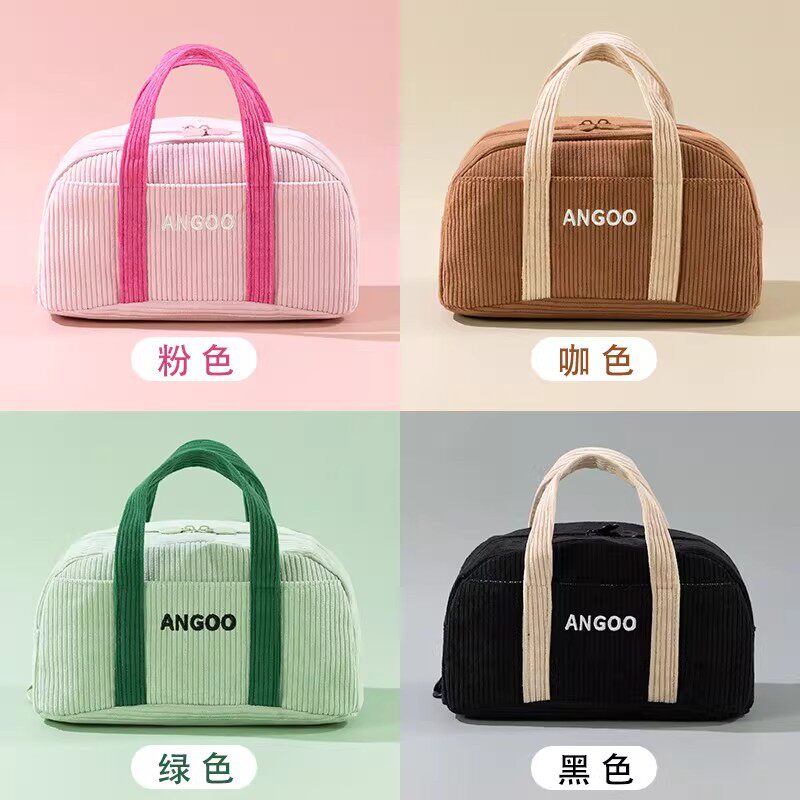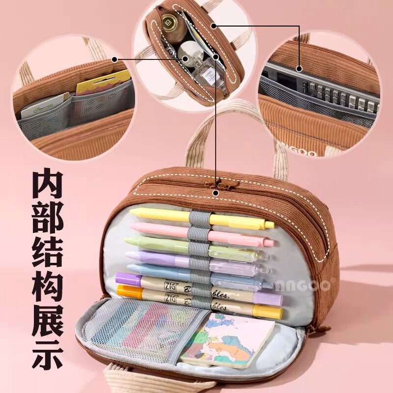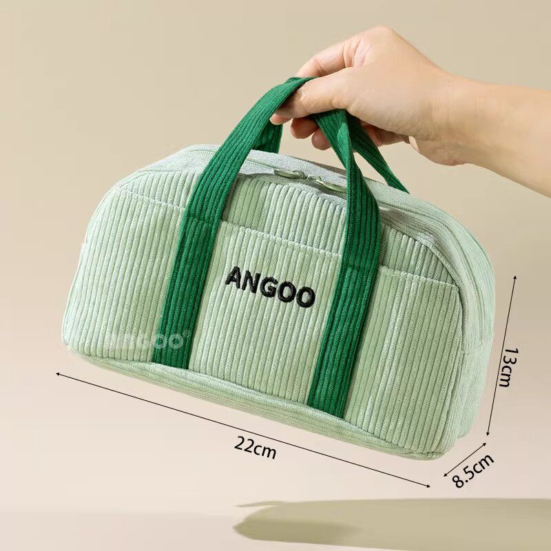 安蔻灯芯绒手提包笔袋简约女ins韩版日系多功能多层原宿风初高中生文艺铅笔盒中学生网红文具袋化妆包收纳包