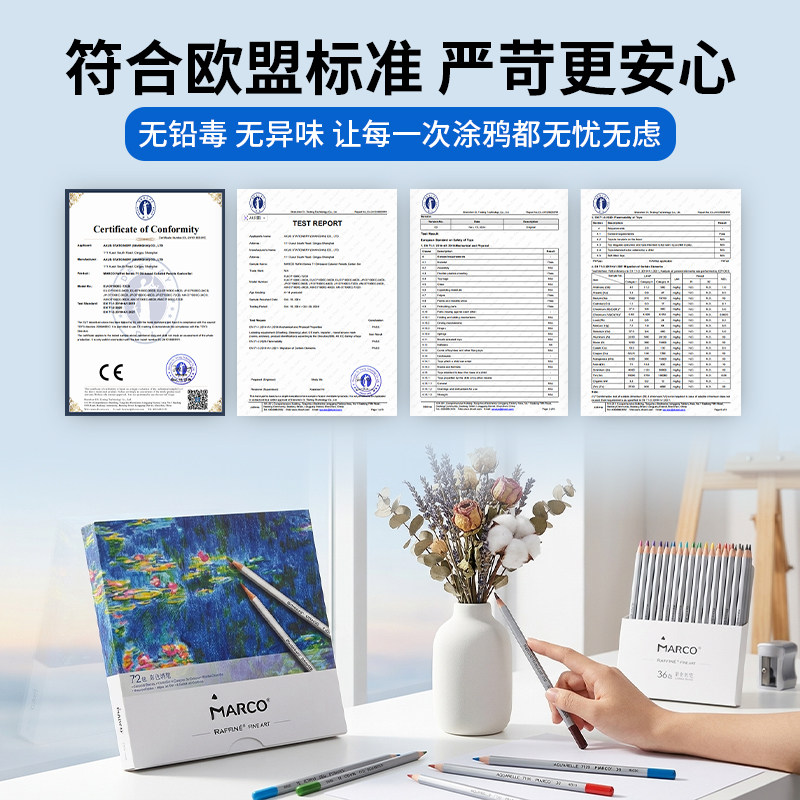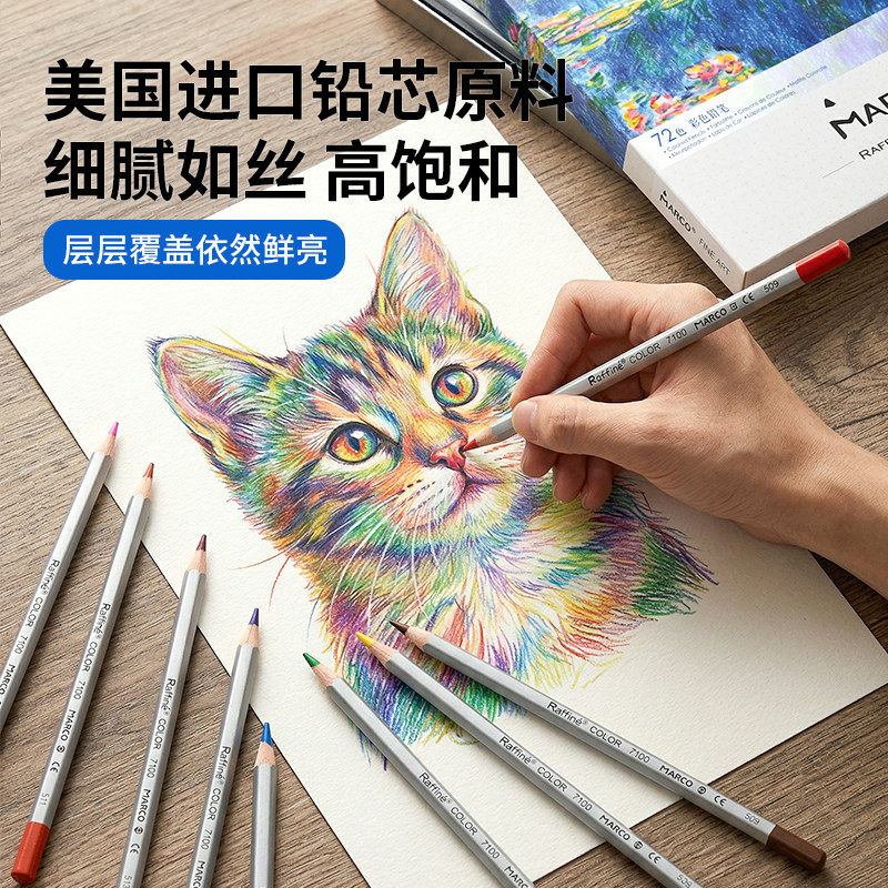 Marco马可彩铅美术生专用油性彩铅美术专用水溶性彩铅笔小学生专用彩色铅笔绘画专用专业级彩铅动漫专用72色
