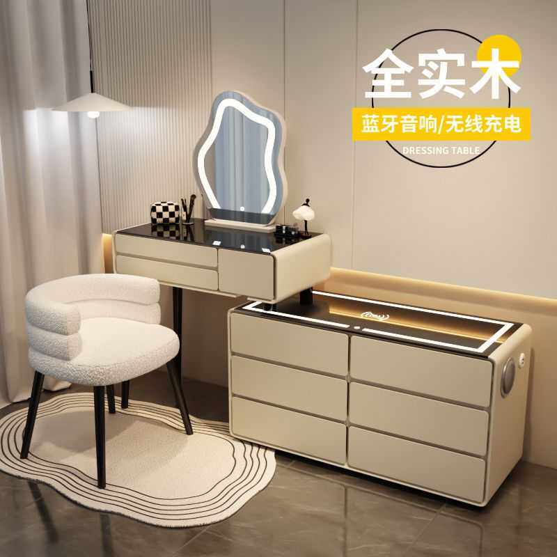 卧室侘寂奶油风实木梳妆台斗柜一体现代简约小户型化妆桌书桌