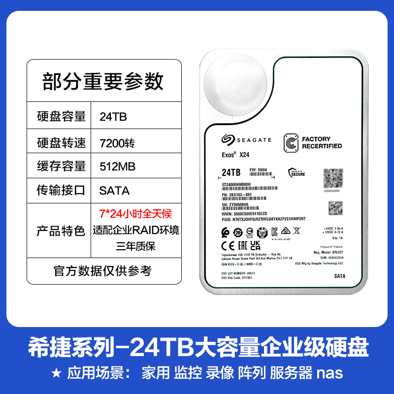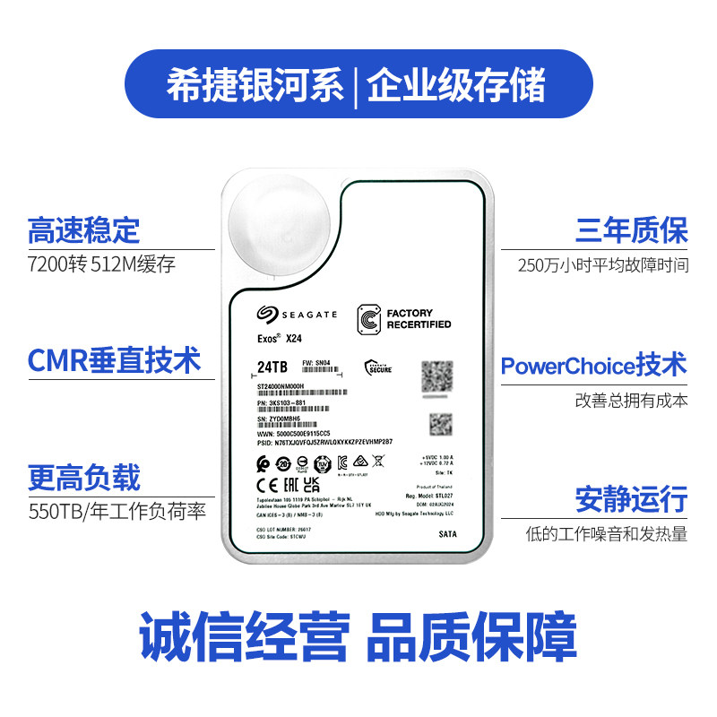 正品希捷银河系企业级ST24000NM000H 氦气盘24TB机械硬盘服务器