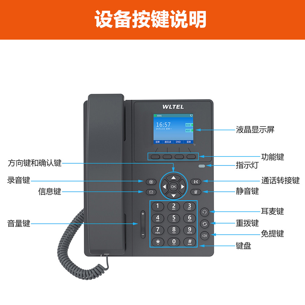 微铃 V110W IP电话机彩屏办公SIP电话V110W 无线双频WIFI 百兆双网口多方会议桌面高清语音办公电话机2.3英寸