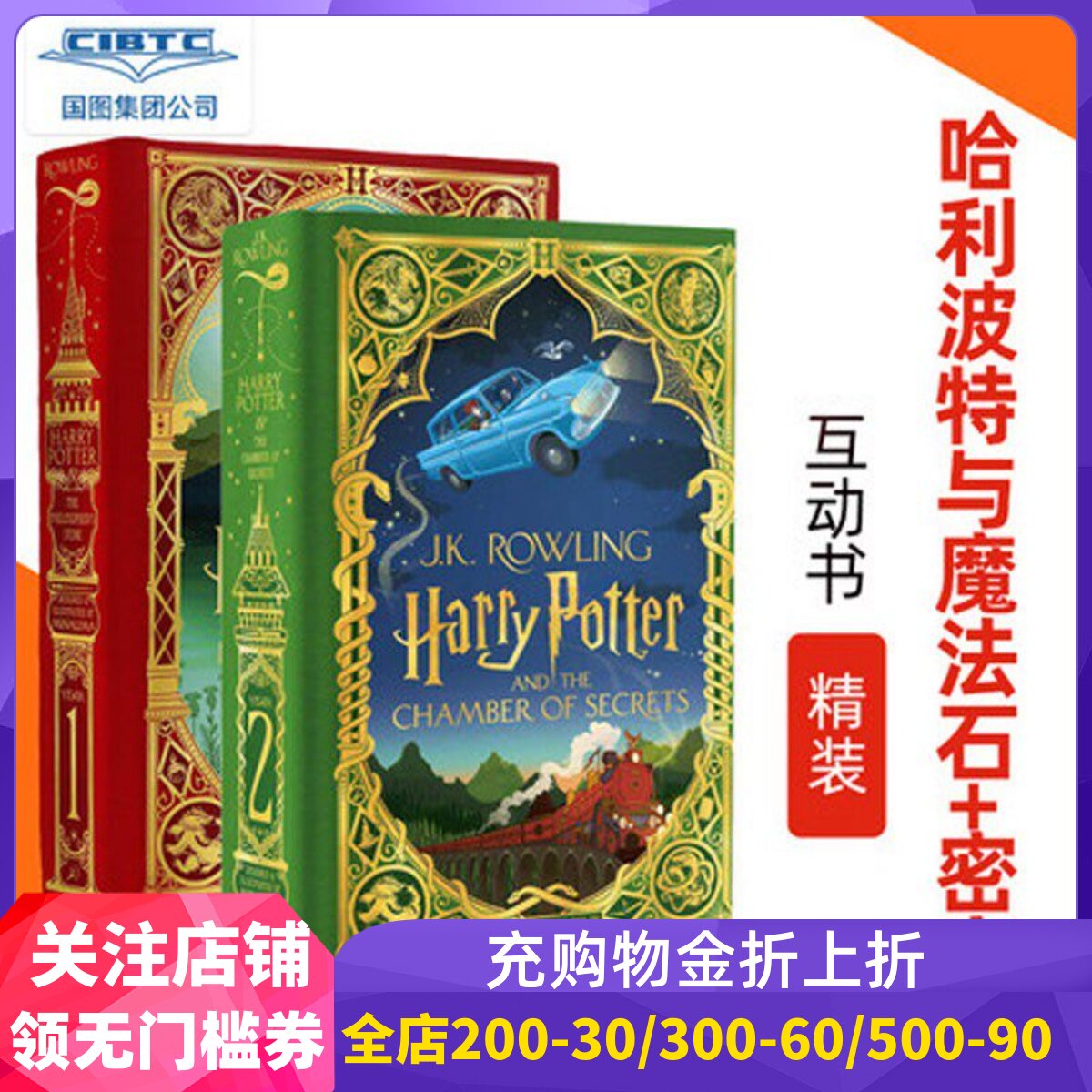英文原版哈利波特与密室+魔法石 精装互动书MinaLima工作室Harry Potter J.K.罗琳 2本组合