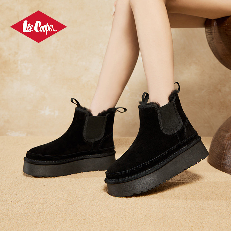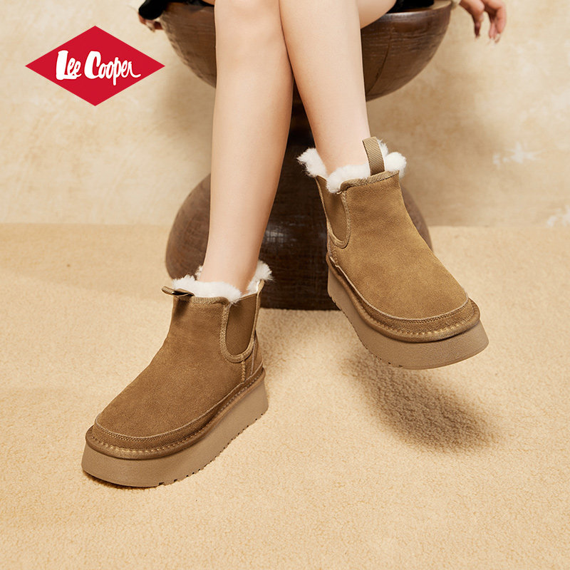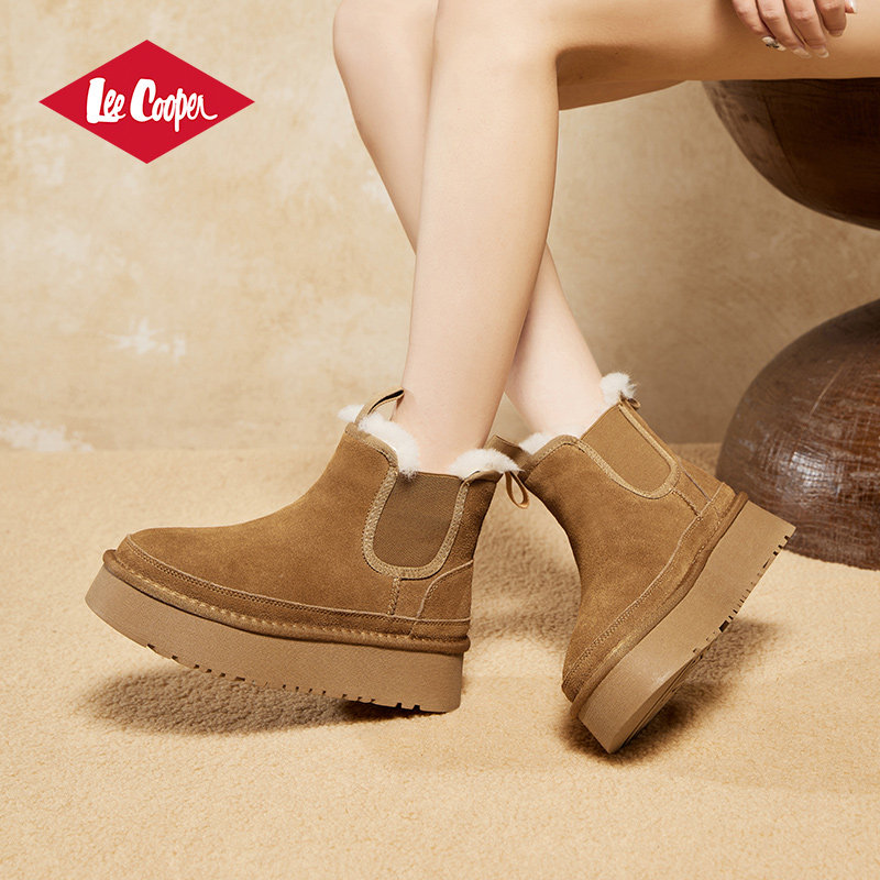 Lee Cooper厚底加绒雪地靴女款2025新款冬季复古绒面保暖增高棉靴