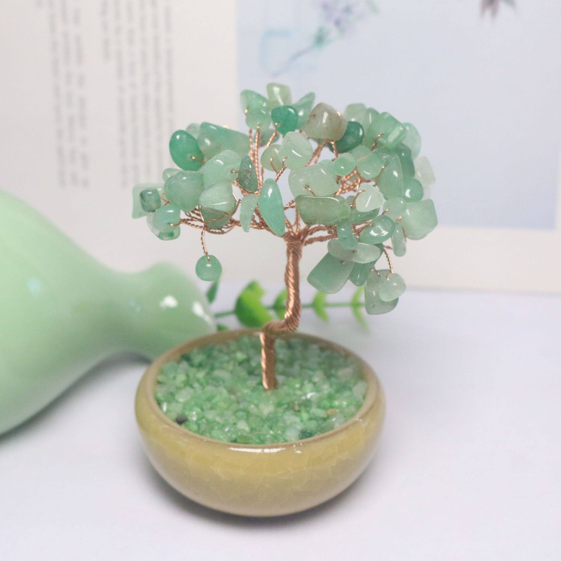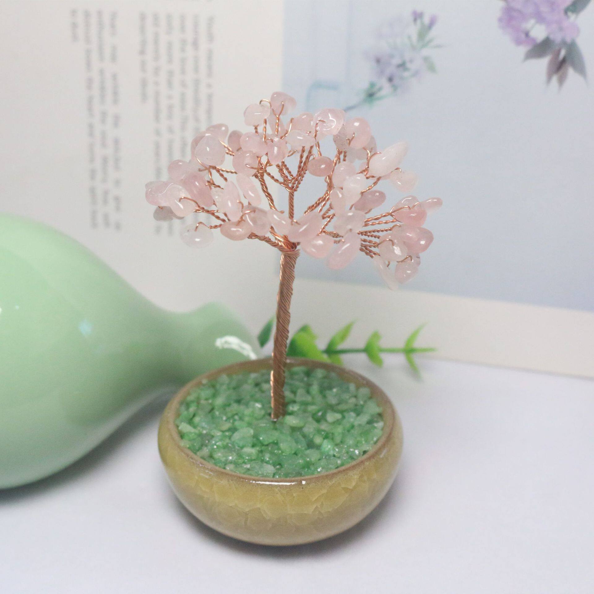天然水晶树碎石摆件发财树家居创意办公装饰工艺品彩色小碗造型底