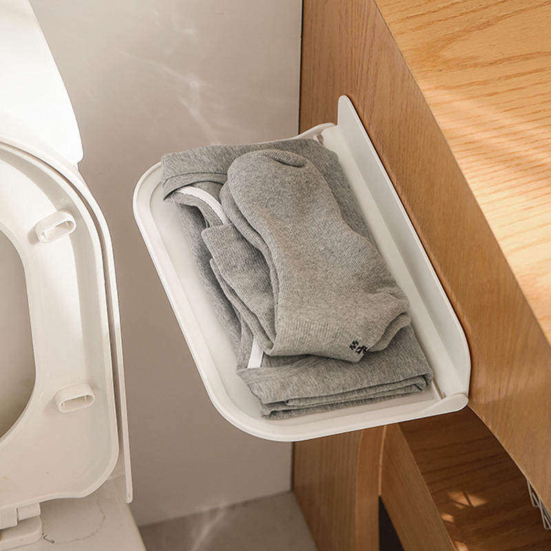 可折叠墙上置物架卫生间厕所手机收纳宿舍床头免打孔托盘机顶盒架