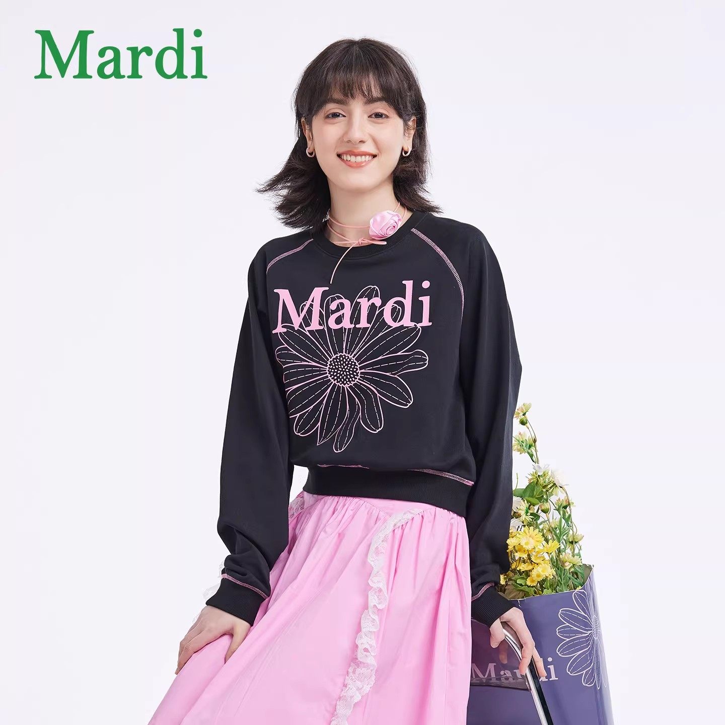 MARDI小雏菊卫衣女圆领时尚士新款修身休闲百搭长袖上衣灰色少女