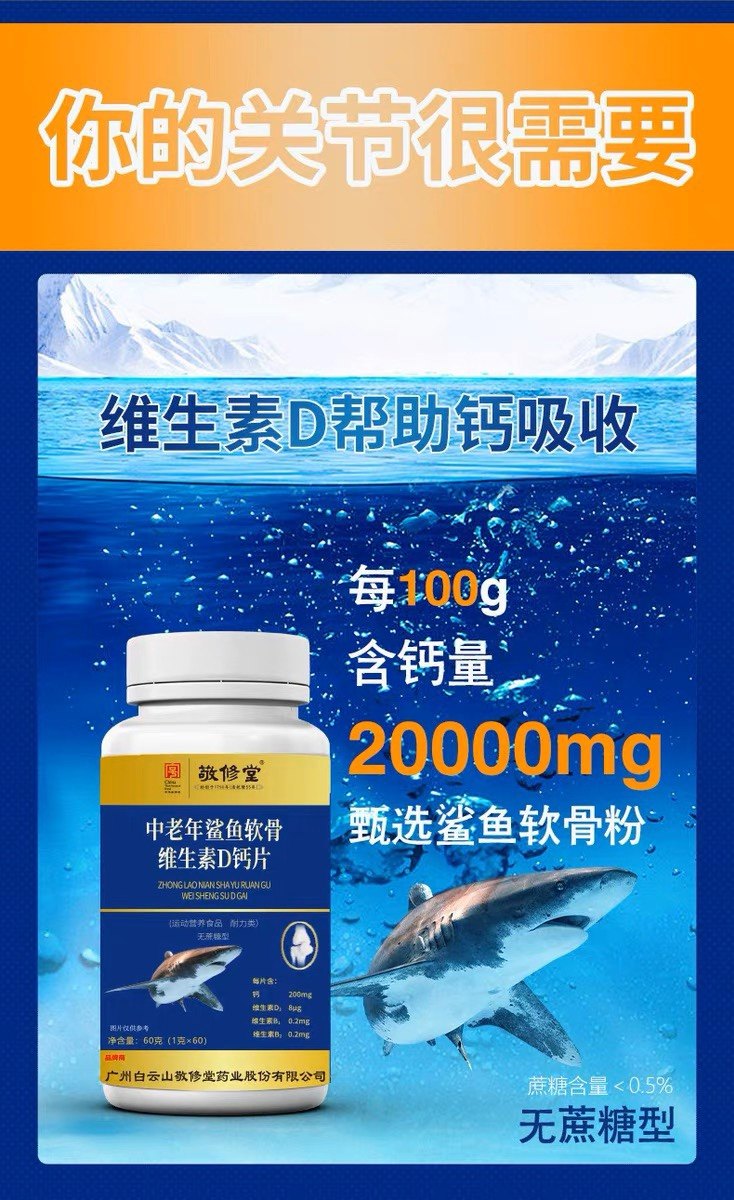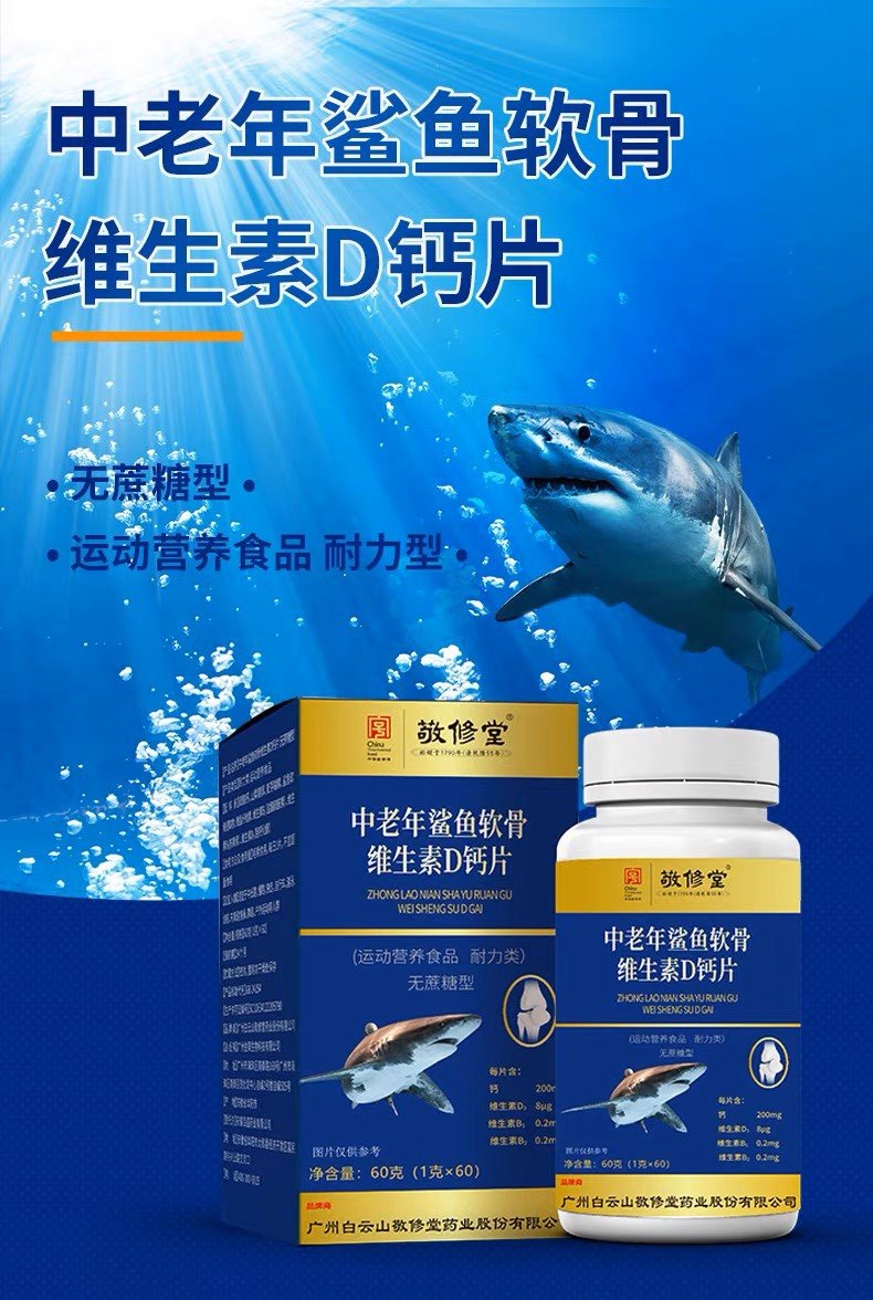 广州白云山敬修堂鲨鱼软骨维生素D钙片正品钙官方正品防伪