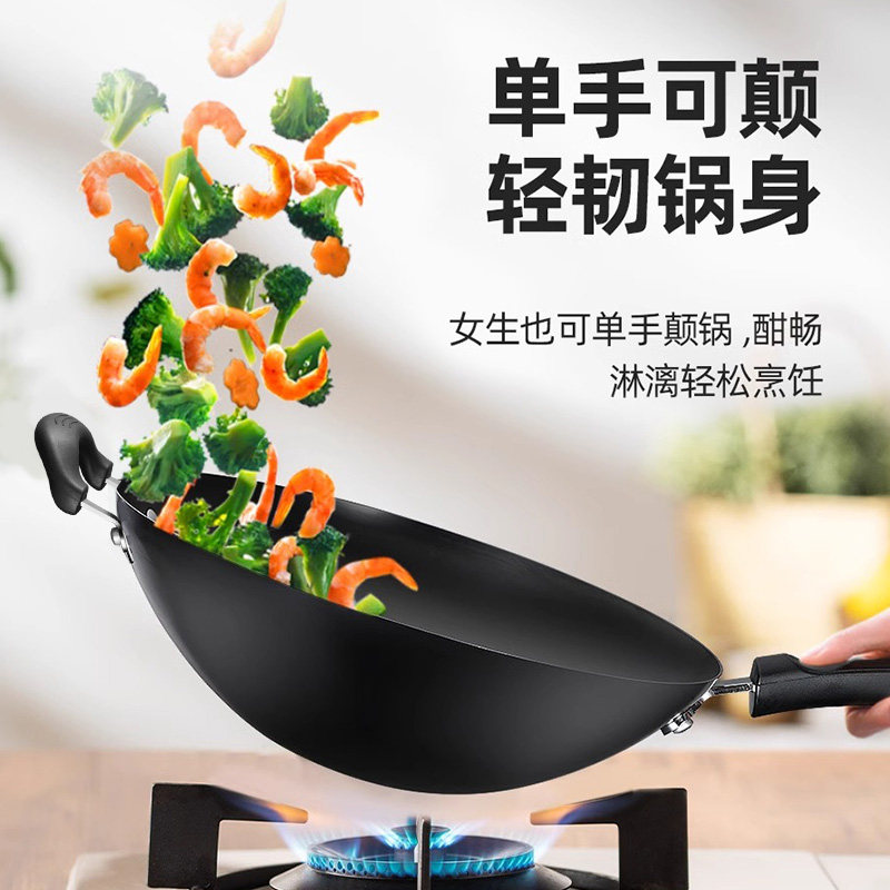 铁锅官方旗舰炒菜锅老式炒锅铁锅家用不粘锅无涂层燃气灶适用