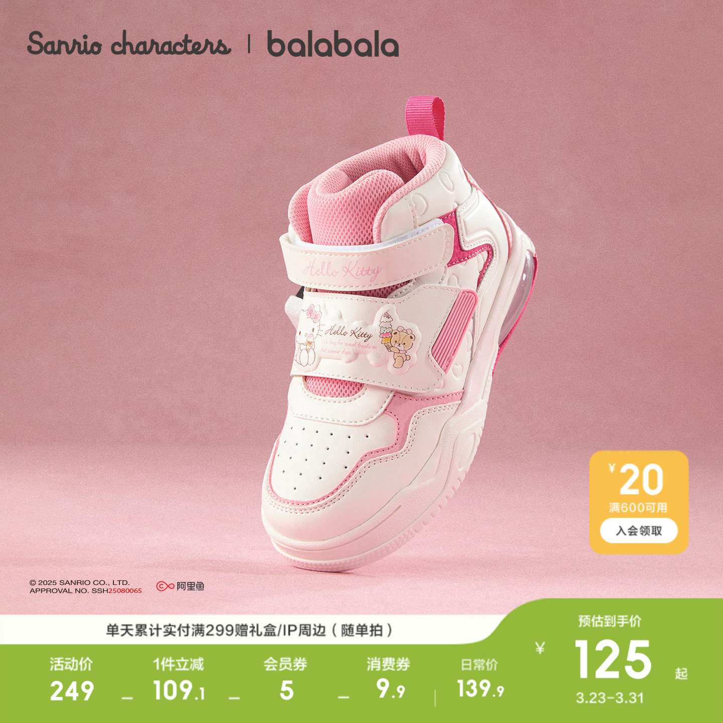 三丽鸥联名高帮板鞋,甜美透气运动鞋