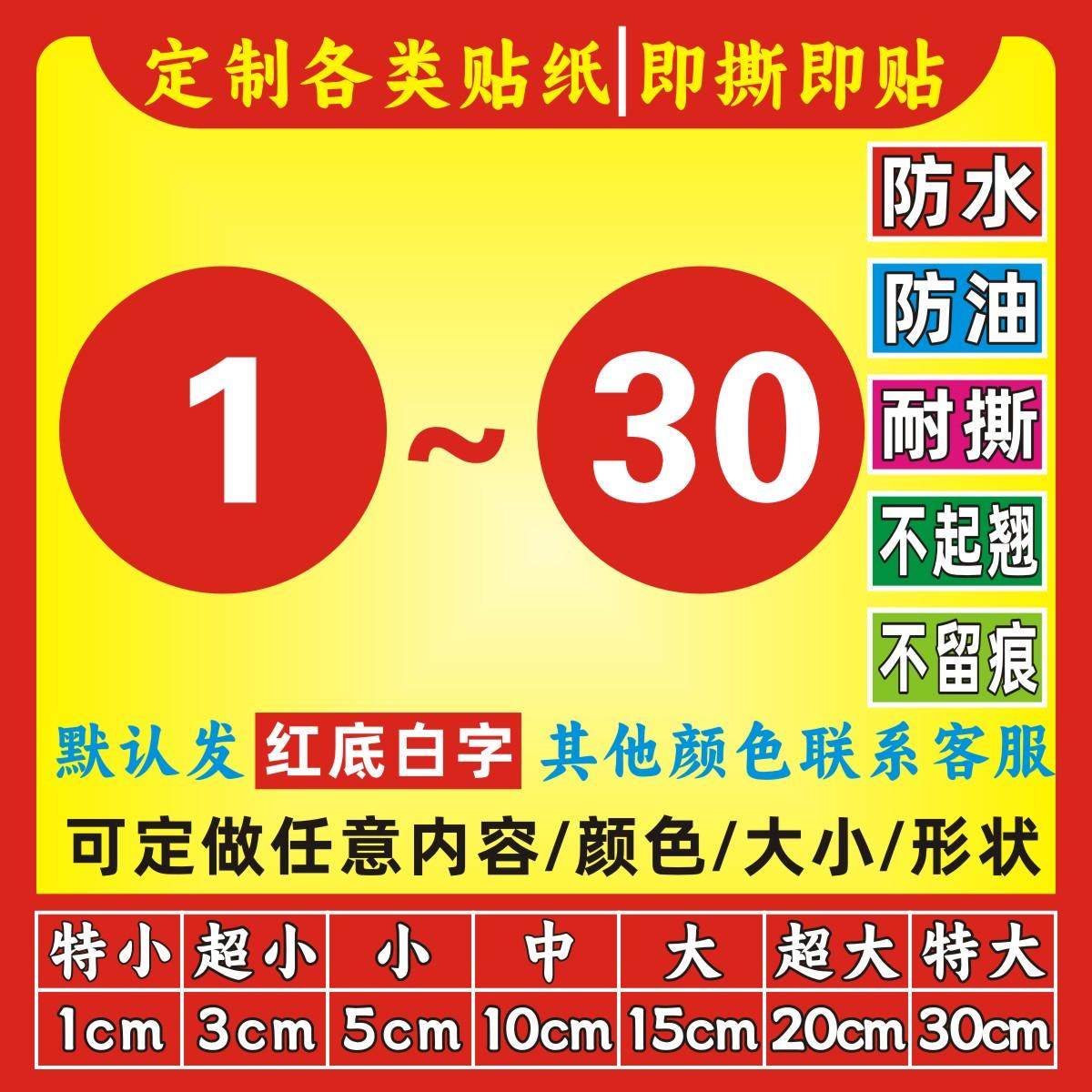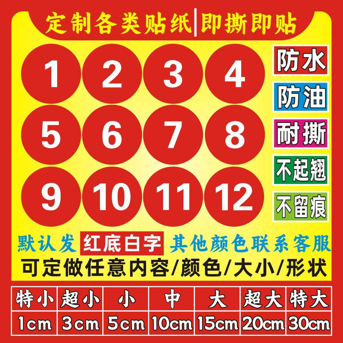 PVC不干胶数字号码贴纸 直播编号 餐桌更衣档案储物柜序号 可定制