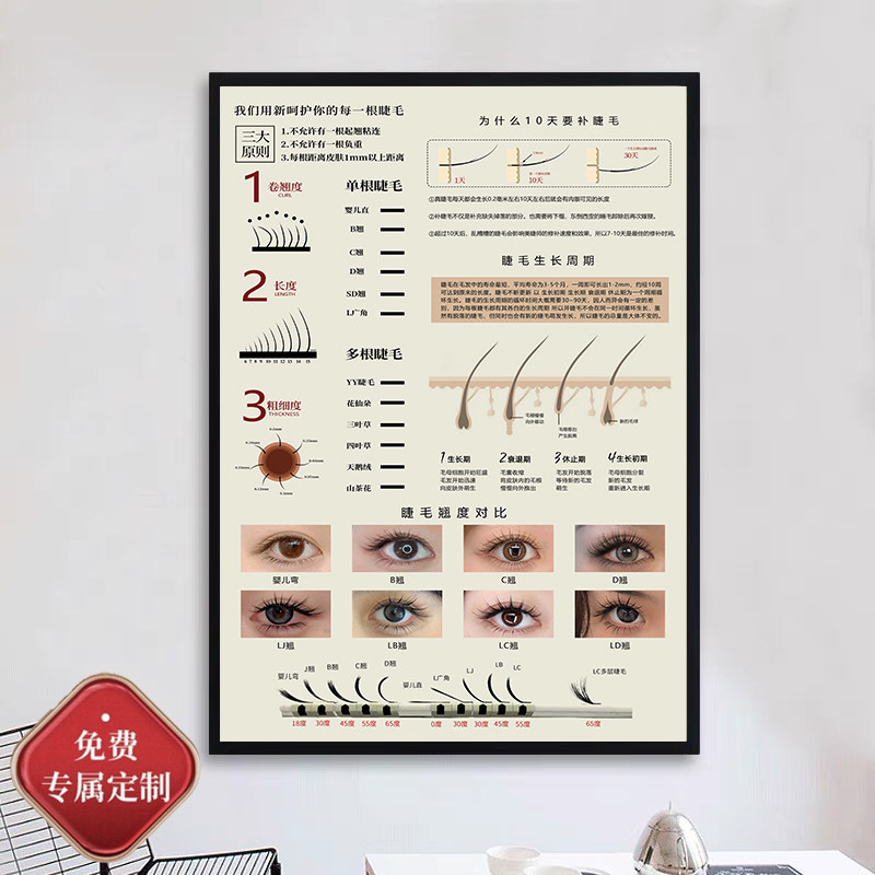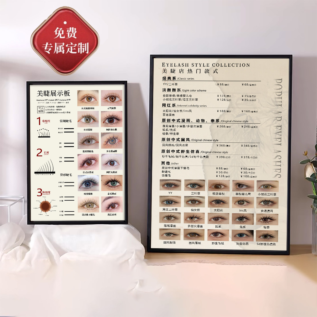 美睫纹绣可定制打印展示板嫁接睫毛美容院项目价格表皮肤管理美甲美发价目表铝合金挂墙墙贴简约相框展示牌