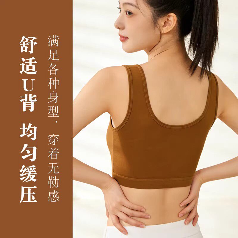 美背运动棉内衣女小胸聚拢背心无钢圈带胸垫抹胸式文胸防下垂防震
