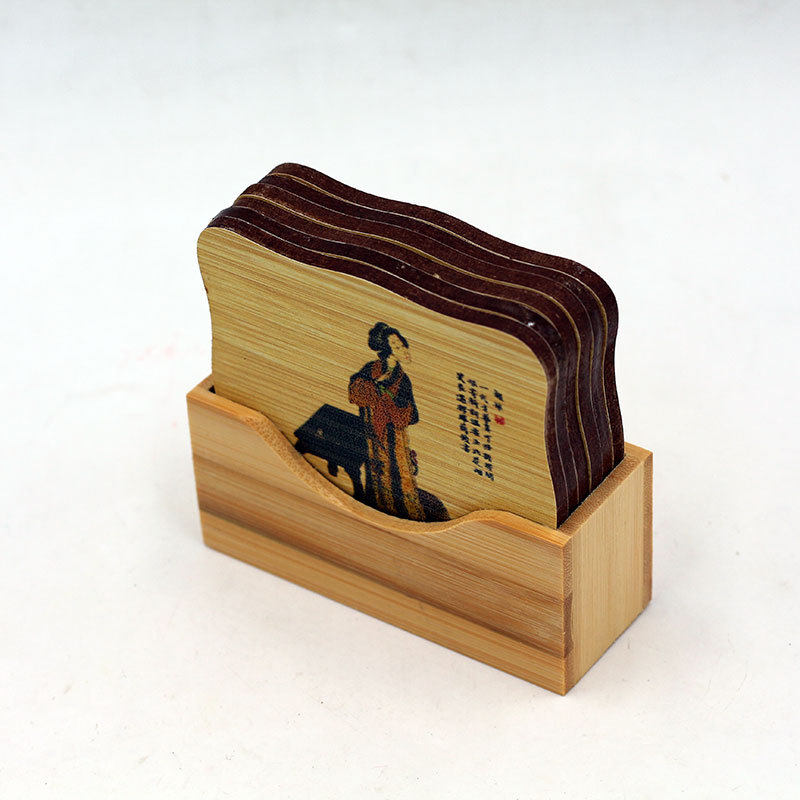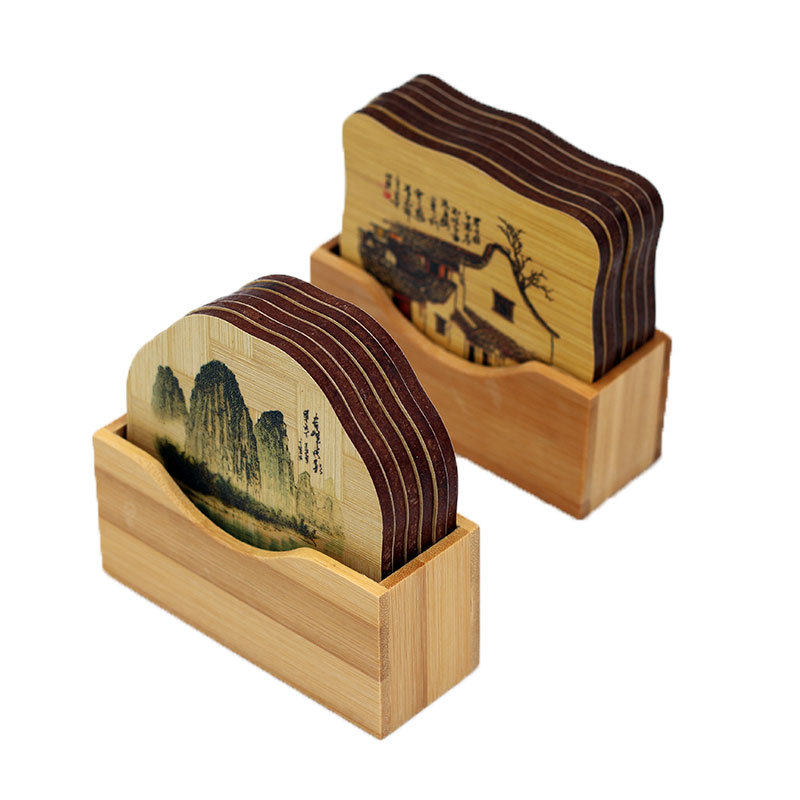 新款餐茶具杯垫 餐具垫印花家居装饰 碳化竹木工艺品礼品
