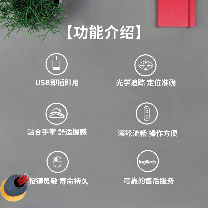罗技M90有线鼠标USB连接台式笔记本电脑家用办公游戏左手通用耐用