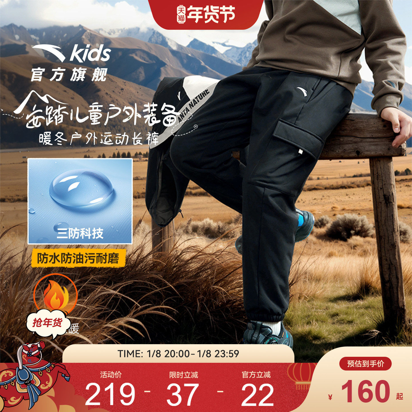 【软壳裤】安踏儿童装男童加绒裤子秋冬2025冬季新款加厚工装长裤