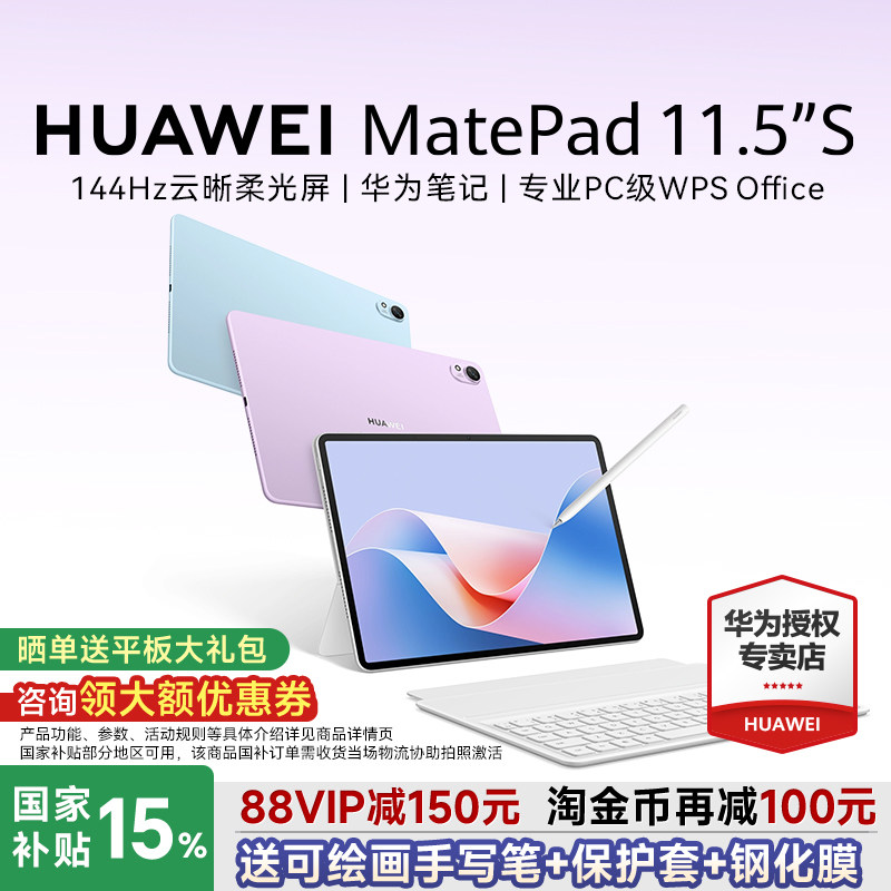 【88VIP减200】华为平板MatePad 11.5S新款ipad平板电脑柔光全面高刷屏学生护眼学习机办公绘画笔记官方旗舰