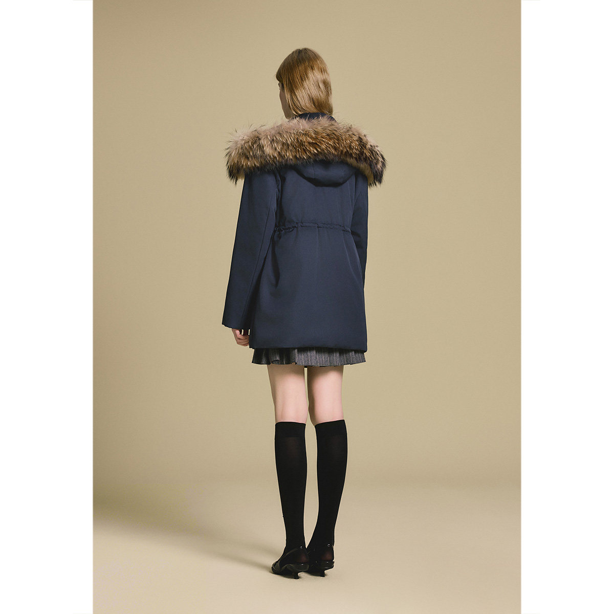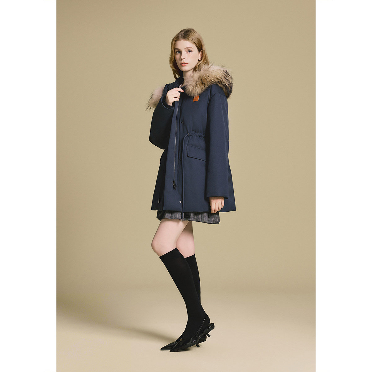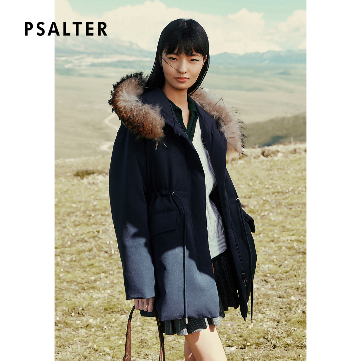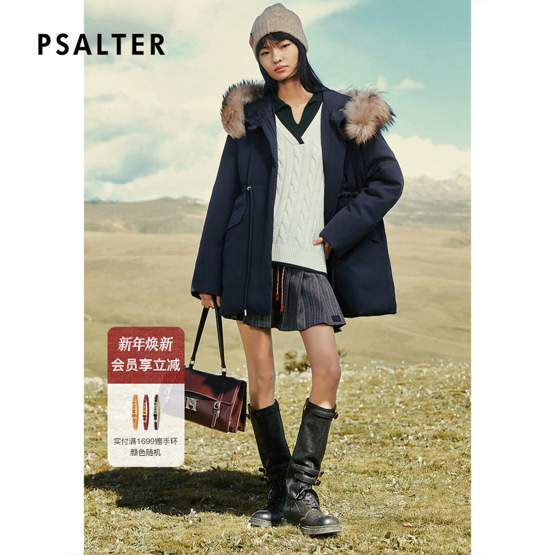 PSALTER诗篇可拆貉子毛领收腰派克羽绒服2025冬季新款