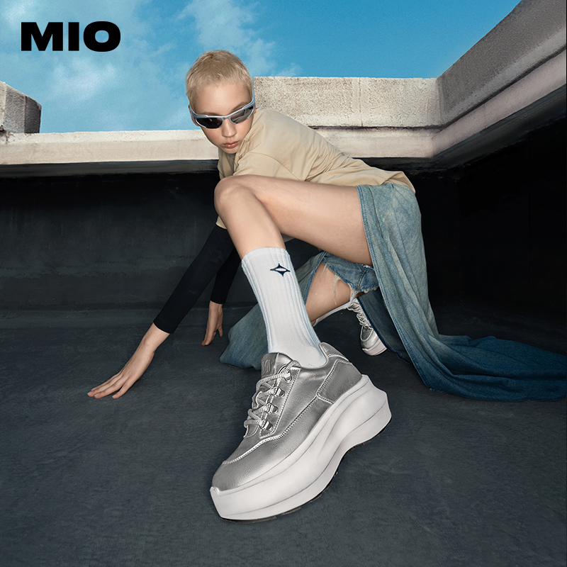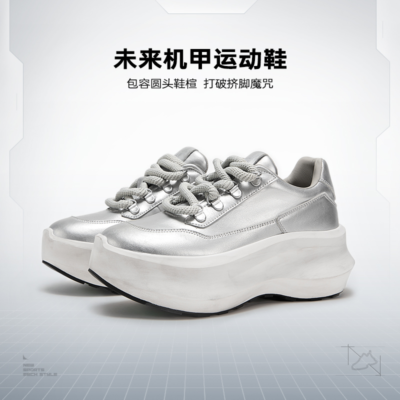 MIO米奥厚底运动鞋女银色脏脏鞋增高系带潮流小众时尚松糕休闲鞋