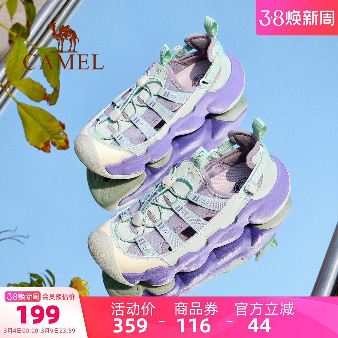 骆驼女鞋户外凉鞋洞洞鞋2026夏季新款运动透气防撞沙滩涉水溯溪鞋