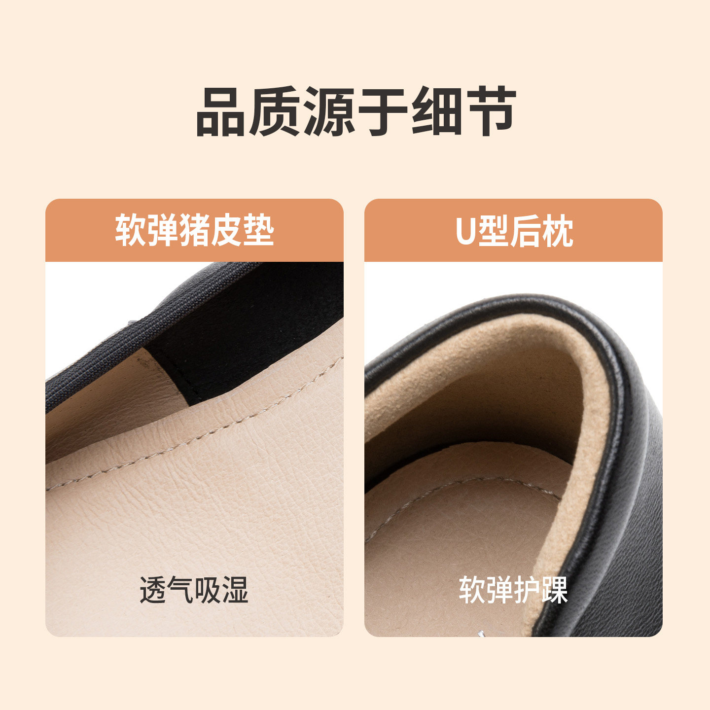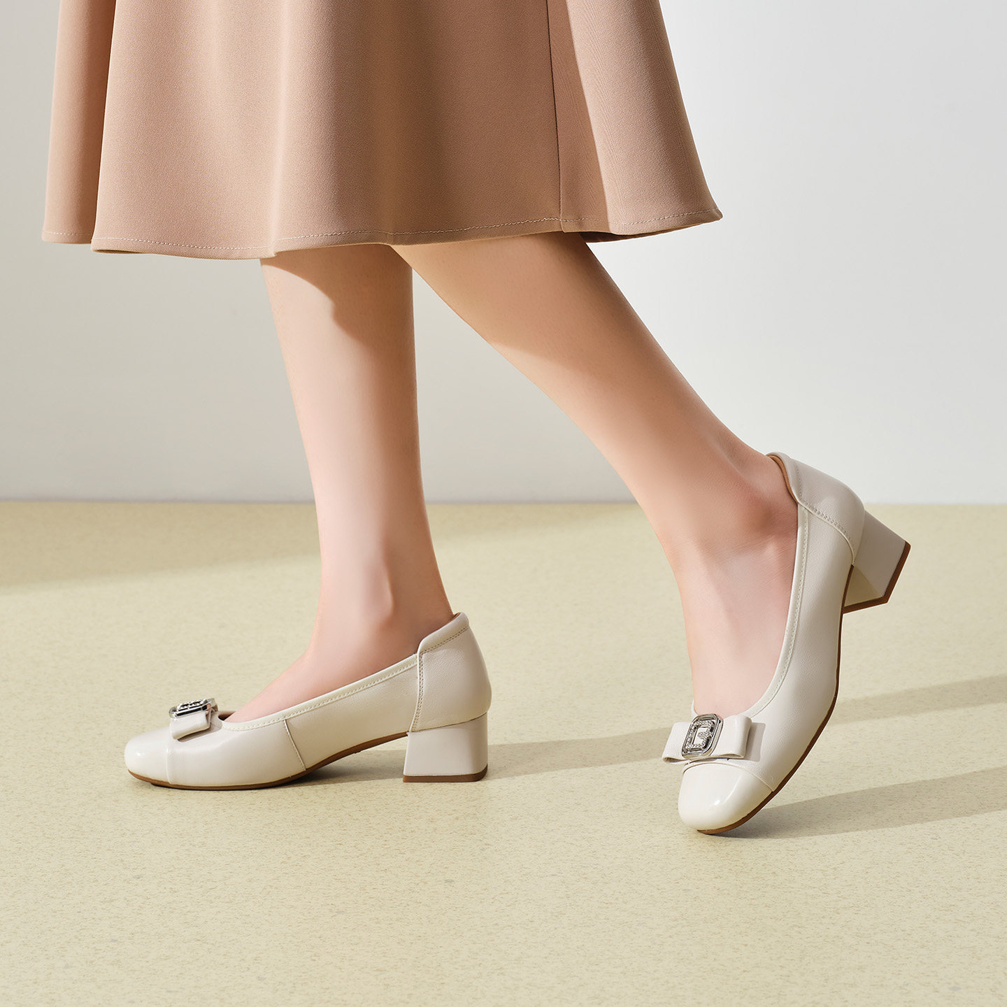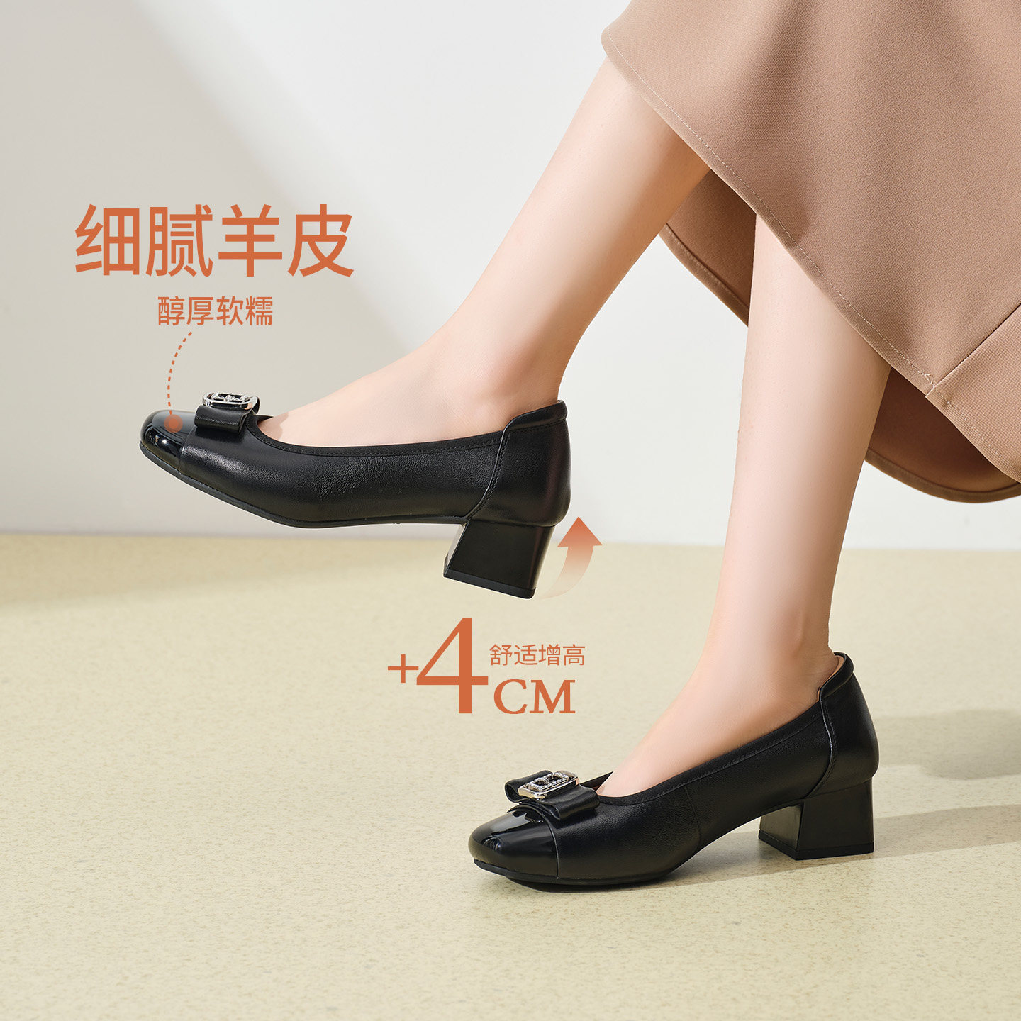 【明星同款|静音系列】千百度练习曲裸色高跟鞋真皮通勤法式单鞋
