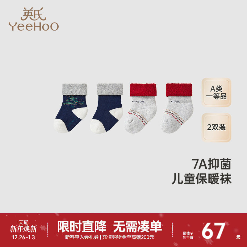 【商场同款】英氏儿童袜子秋冬婴儿袜子7A抗菌短袜两双装2025新款
