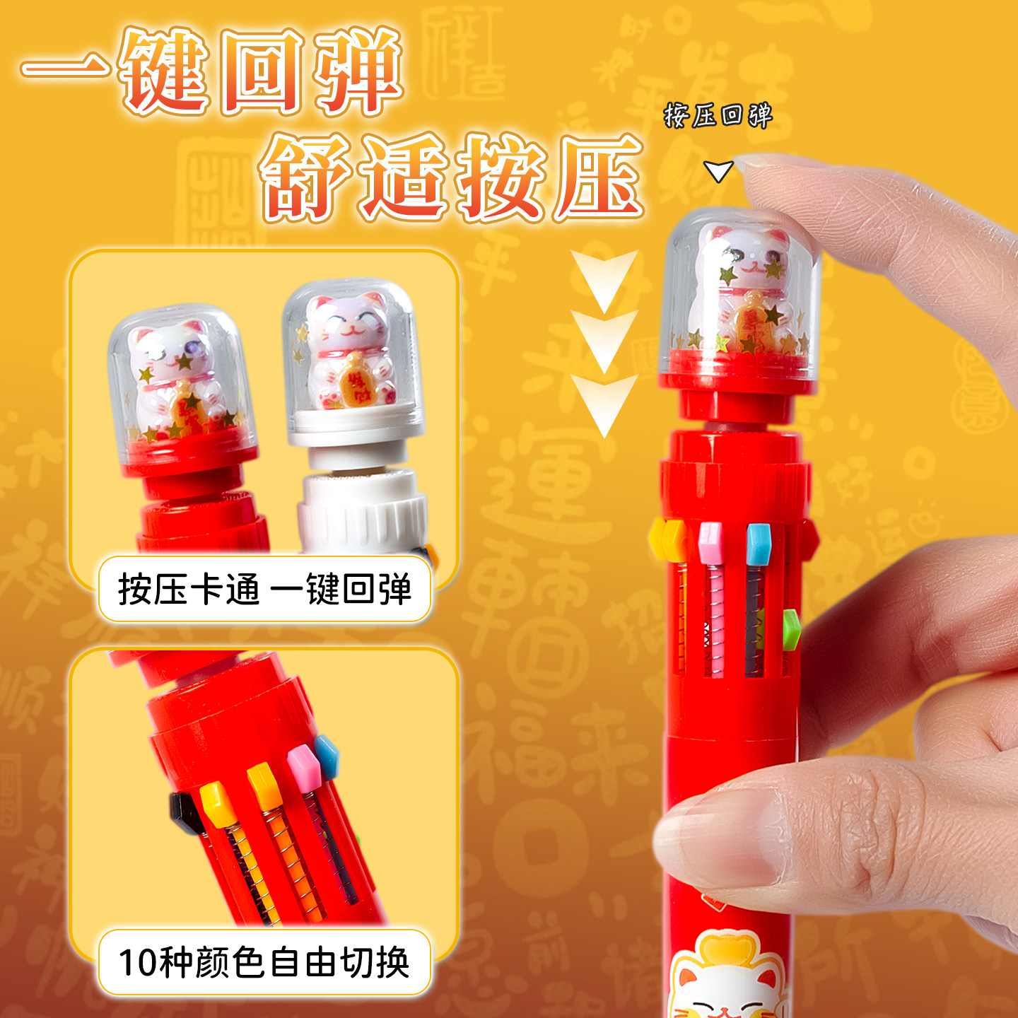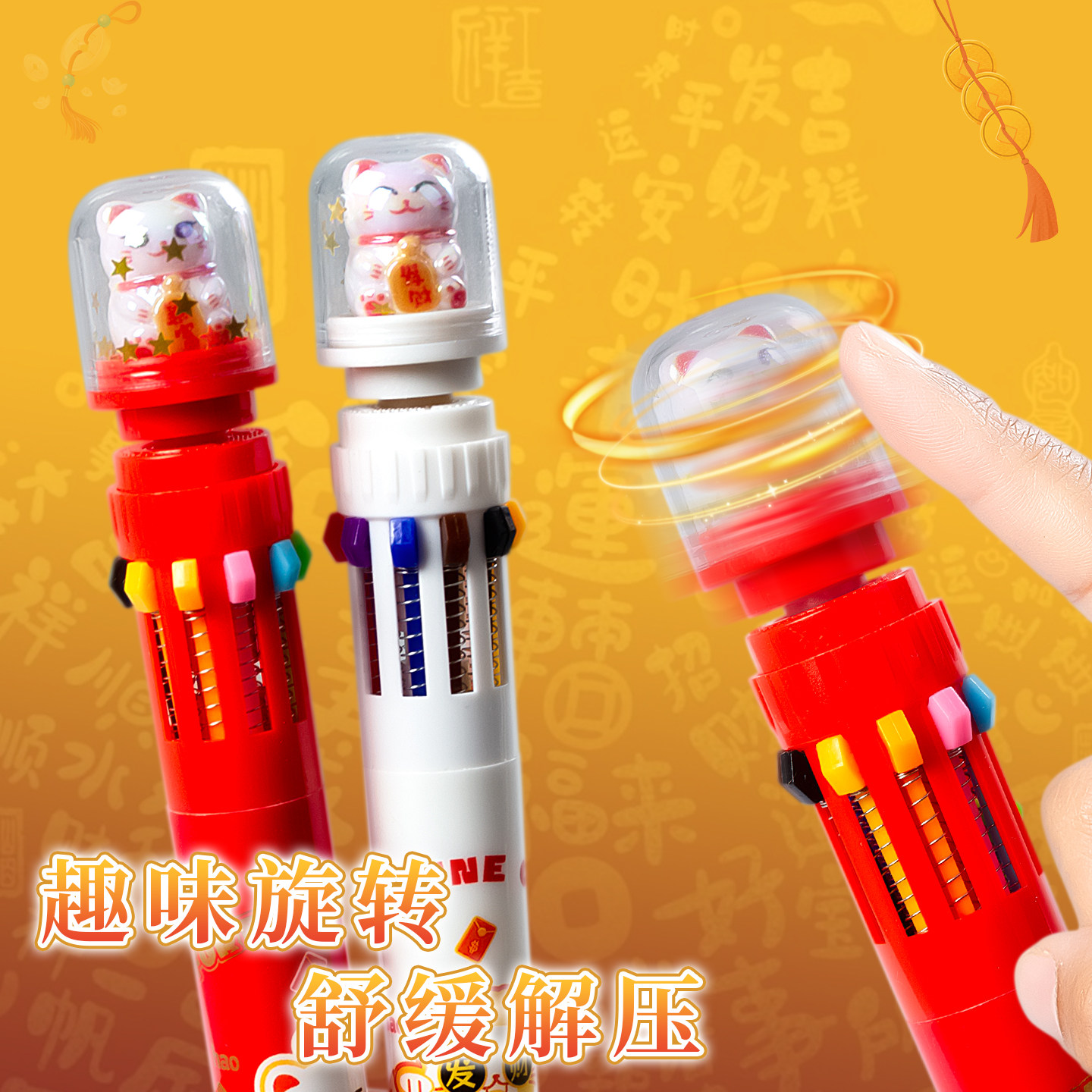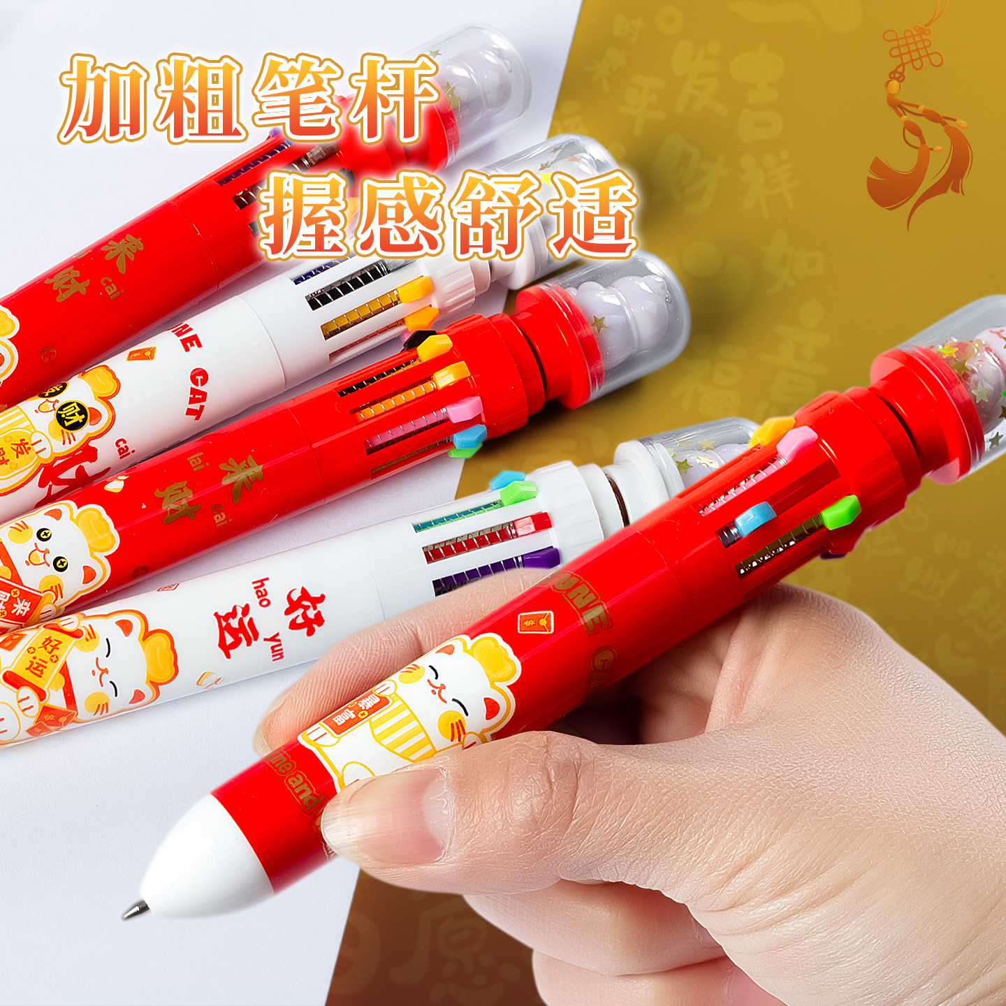 2026新年招财猫景观按动十色笔多色合一圆珠笔可爱小学生做笔记专用划重点记号笔diy手帐趣味解压悬浮转转笔