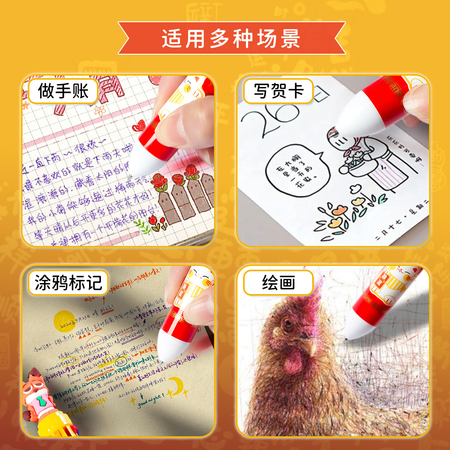 创意卡通多色签字笔可爱按压十色圆珠笔学生奖励实用礼品小奖品