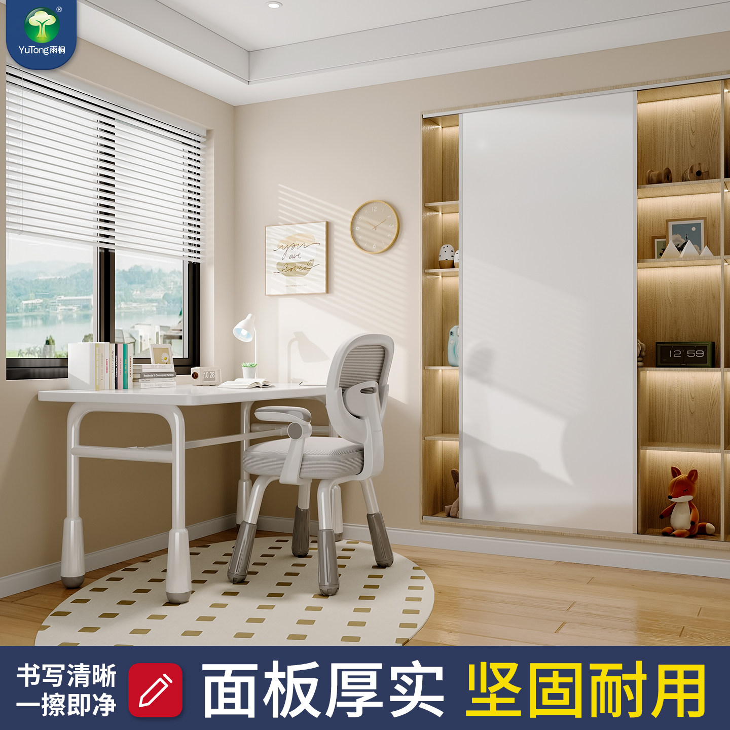 雨桐磁性白板可移动推拉门图书馆书架书房书柜家用儿童涂鸦画板练字大白板磁吸黑板办公培训写字板可擦写定制
