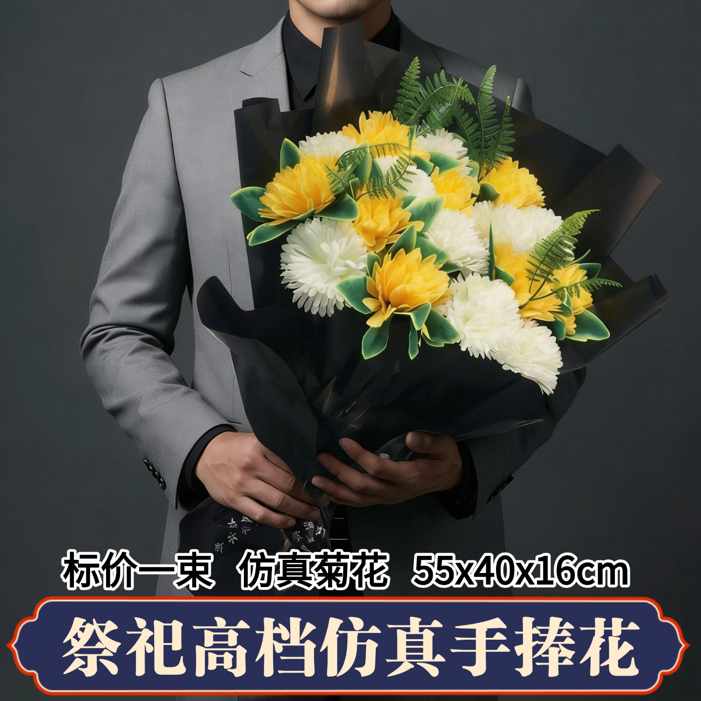 祭祀用品手捧花假花仿真白黄菊花清明中元节周年今日扫墓祭祖殡葬
