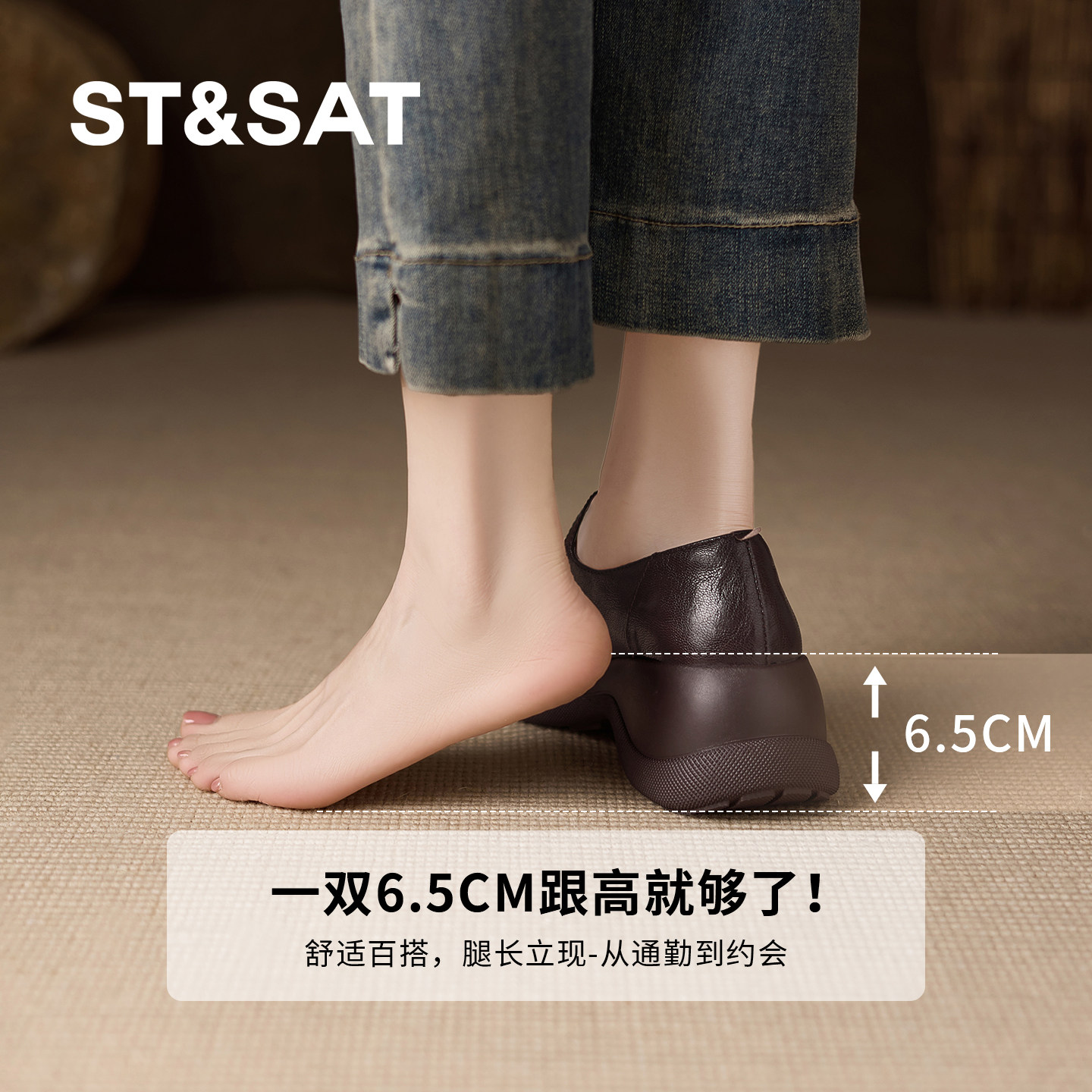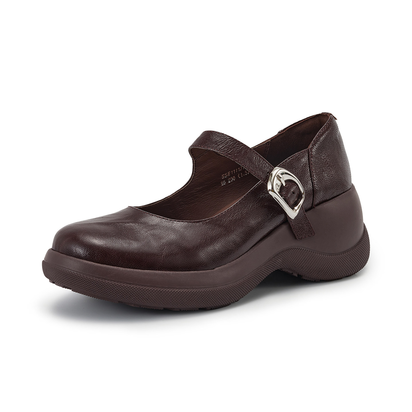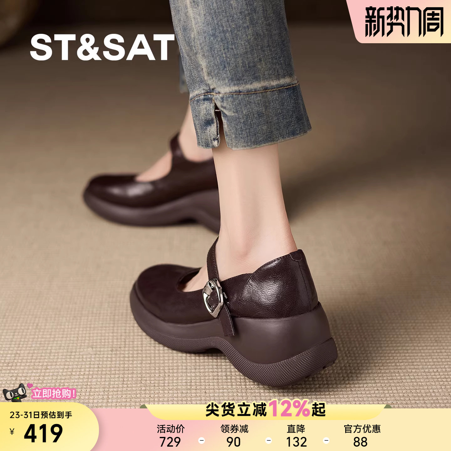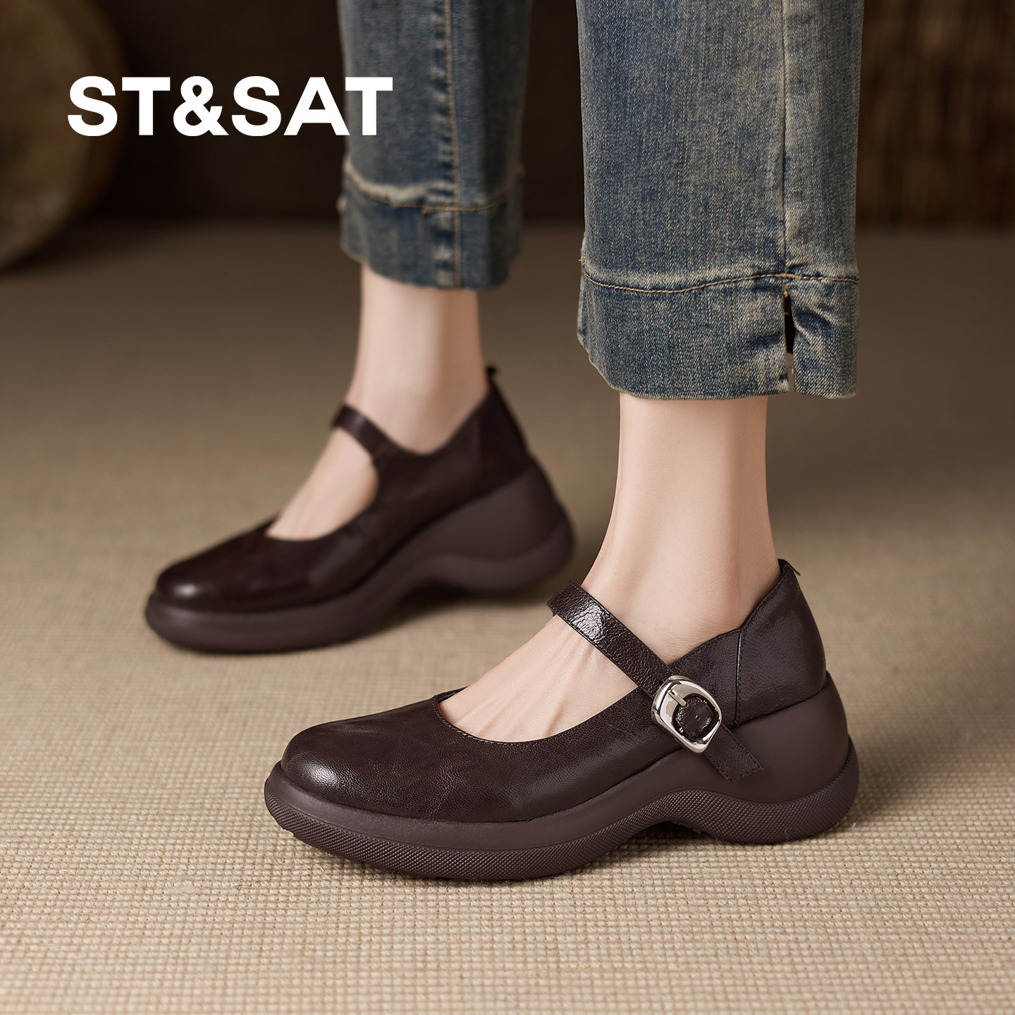 星期六厚底玛丽珍鞋女2026春季新款真皮一字带巨舒适软底坡跟单鞋