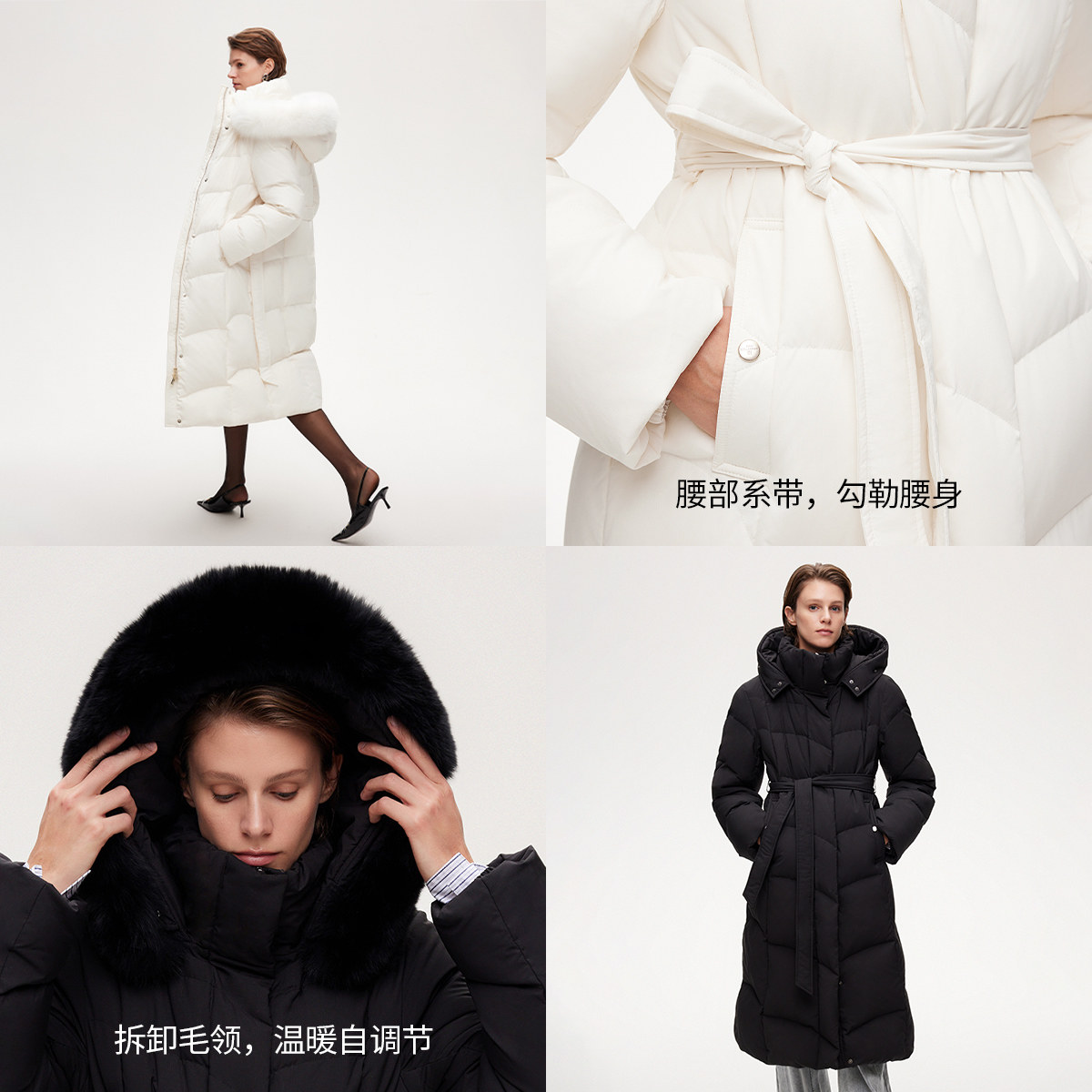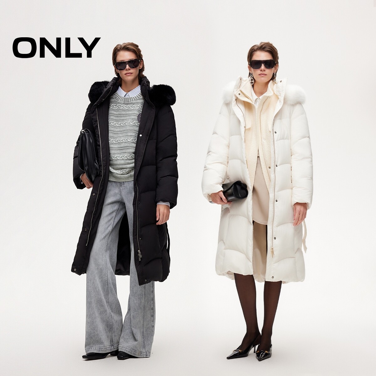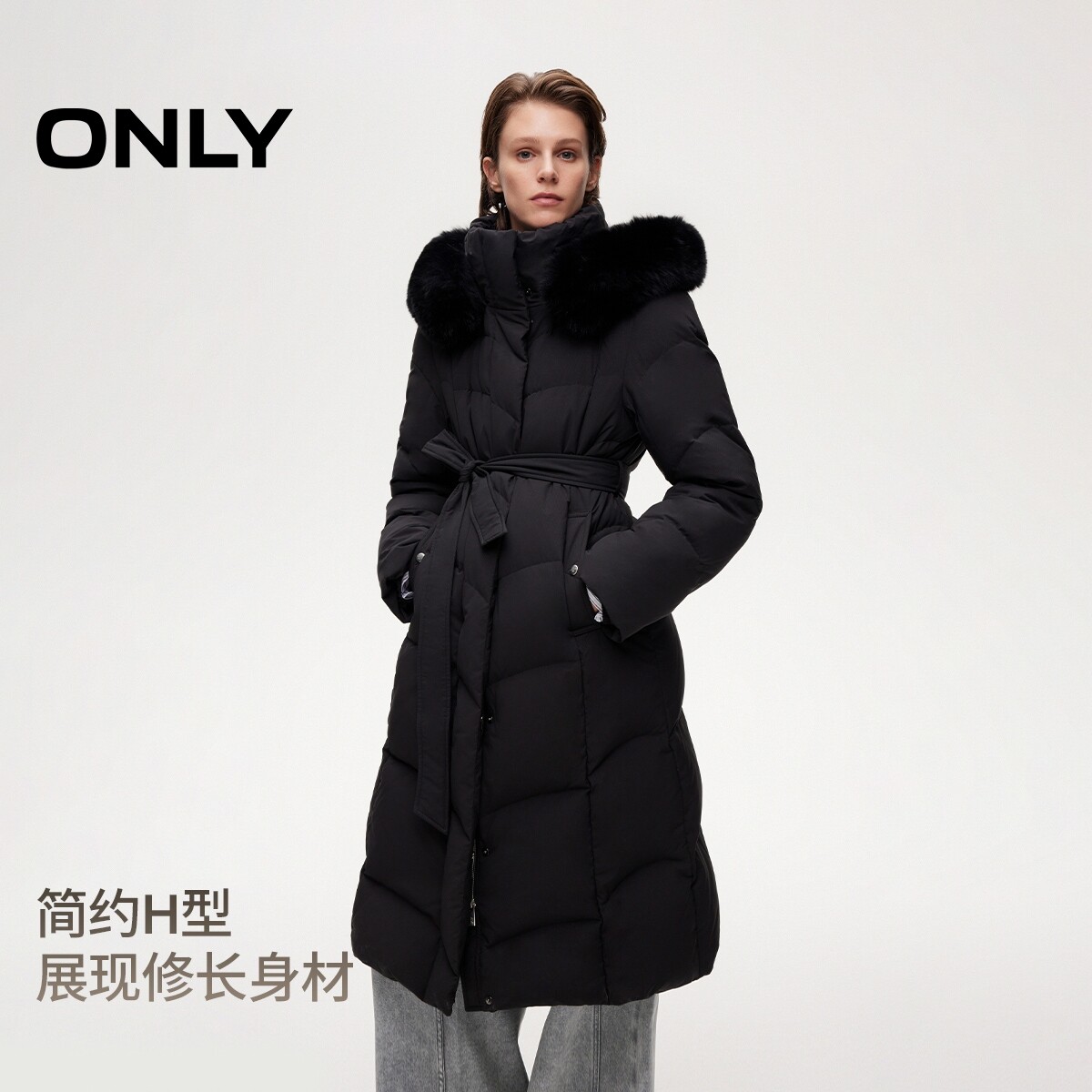 【90白鹅绒】ONLY奥莱冬季新款纯色百搭狐毛领连帽保暖羽绒服女