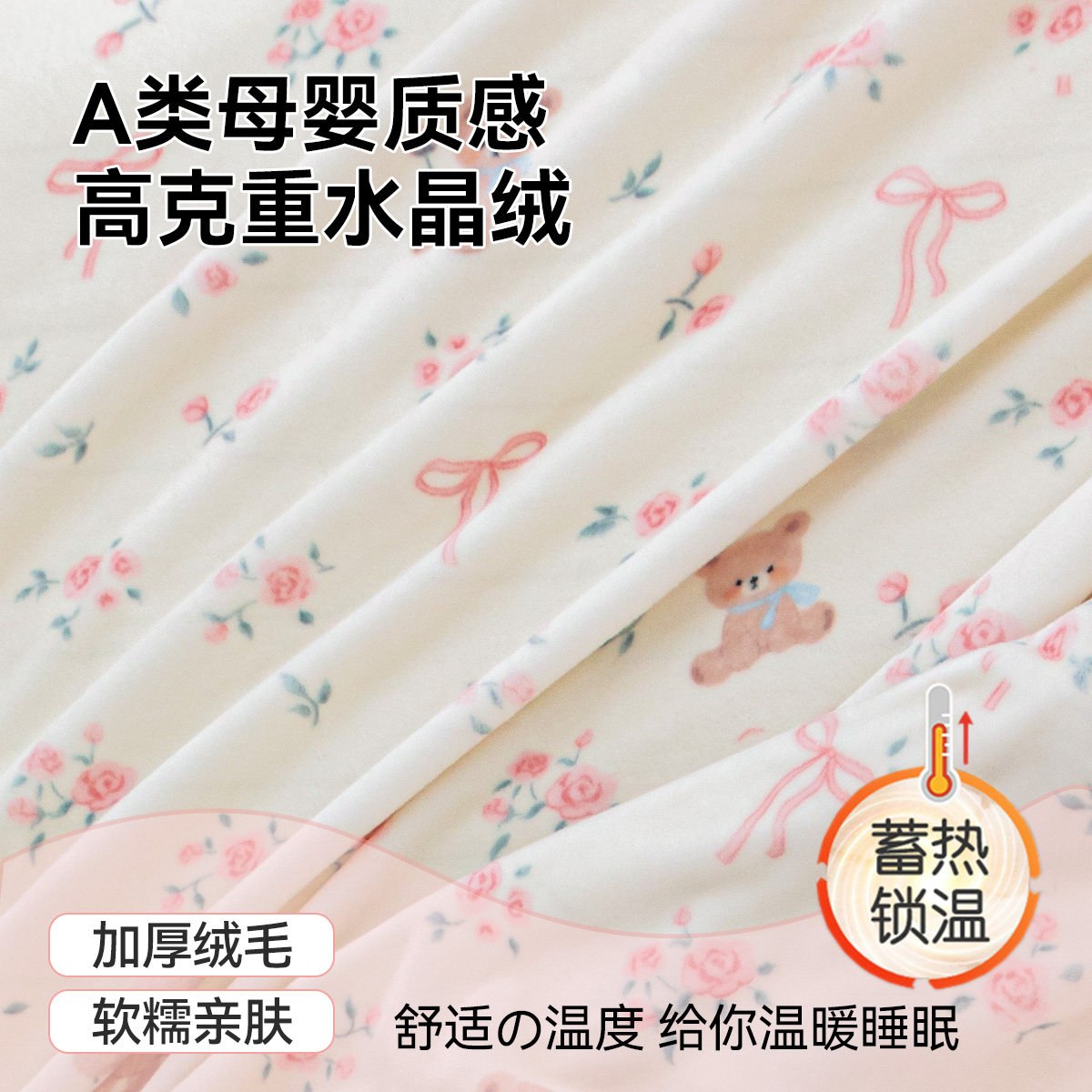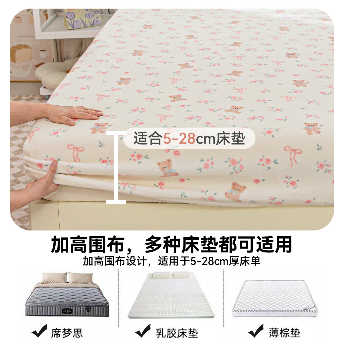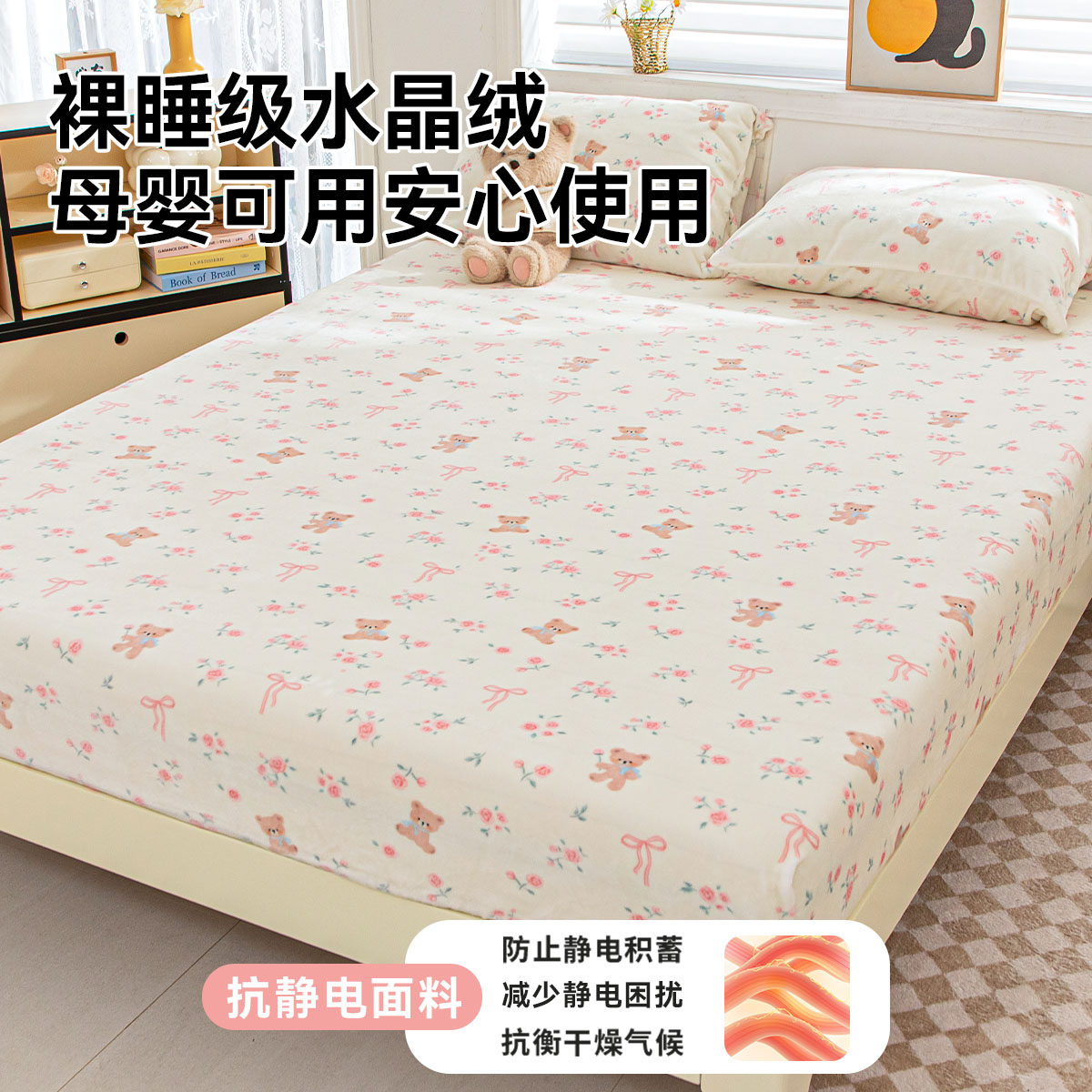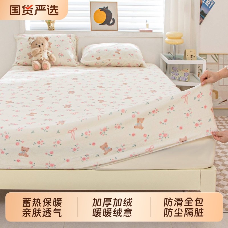 床笠罩冬季加厚牛奶绒床笠套件印花防滑床褥垫全包水晶绒床单枕套