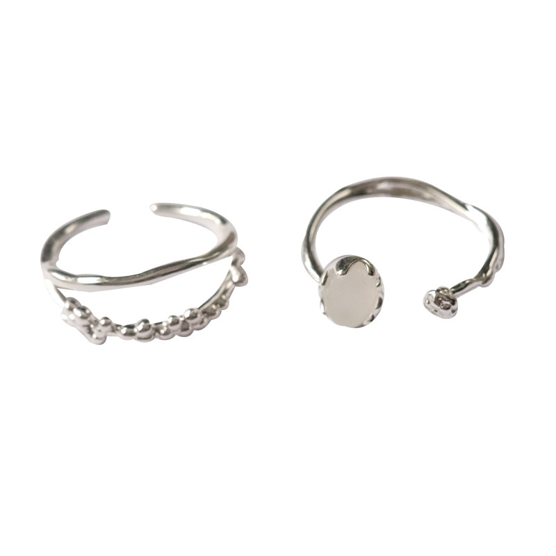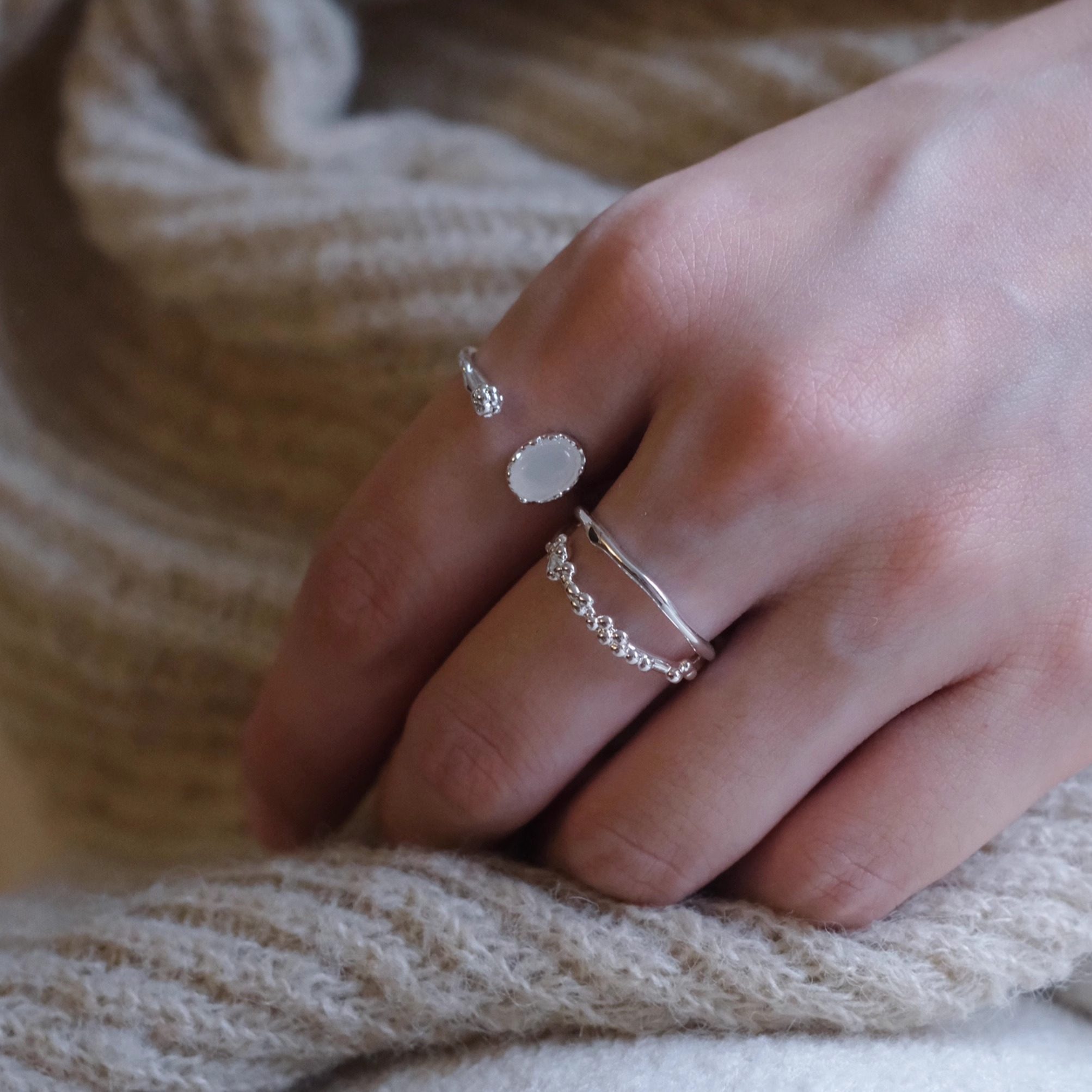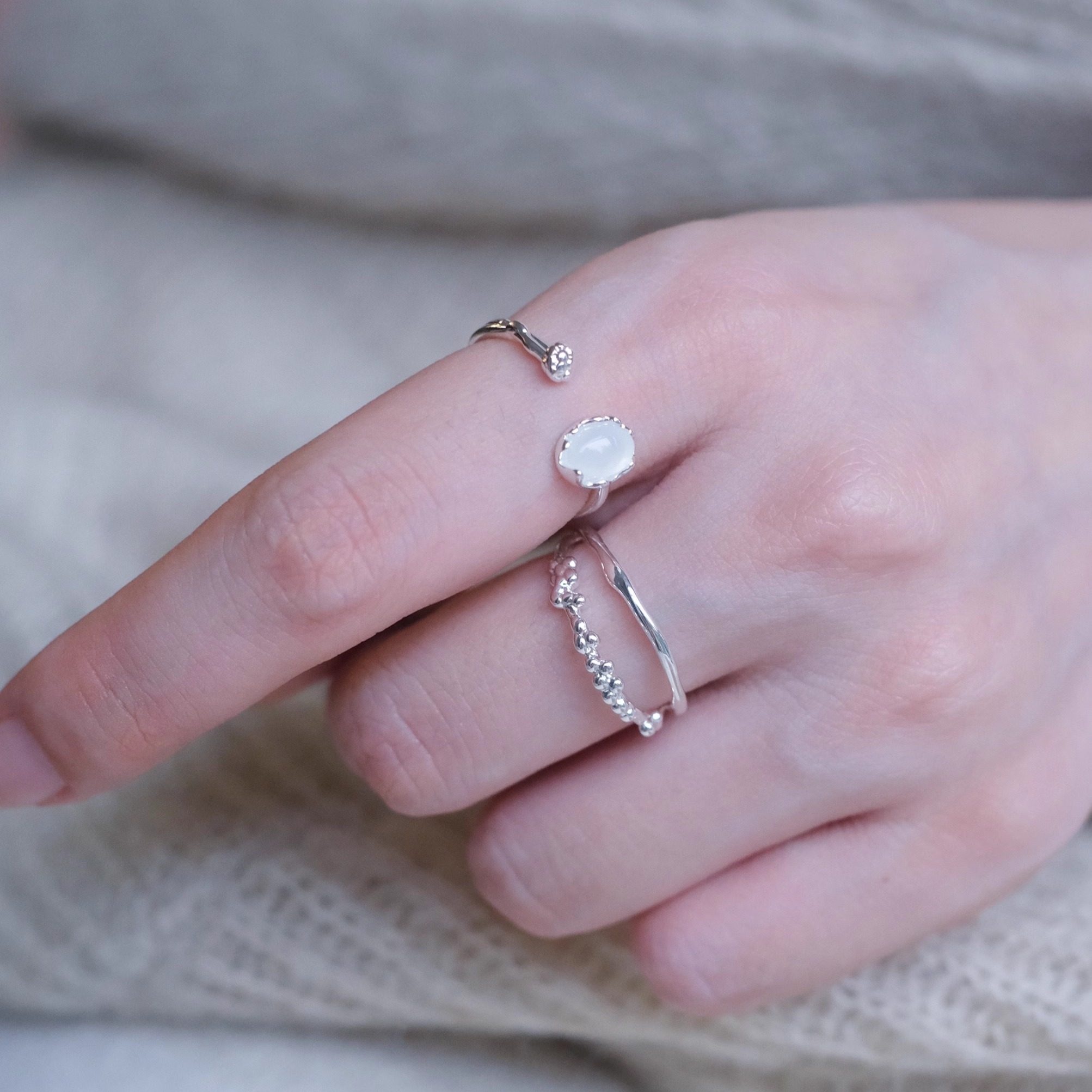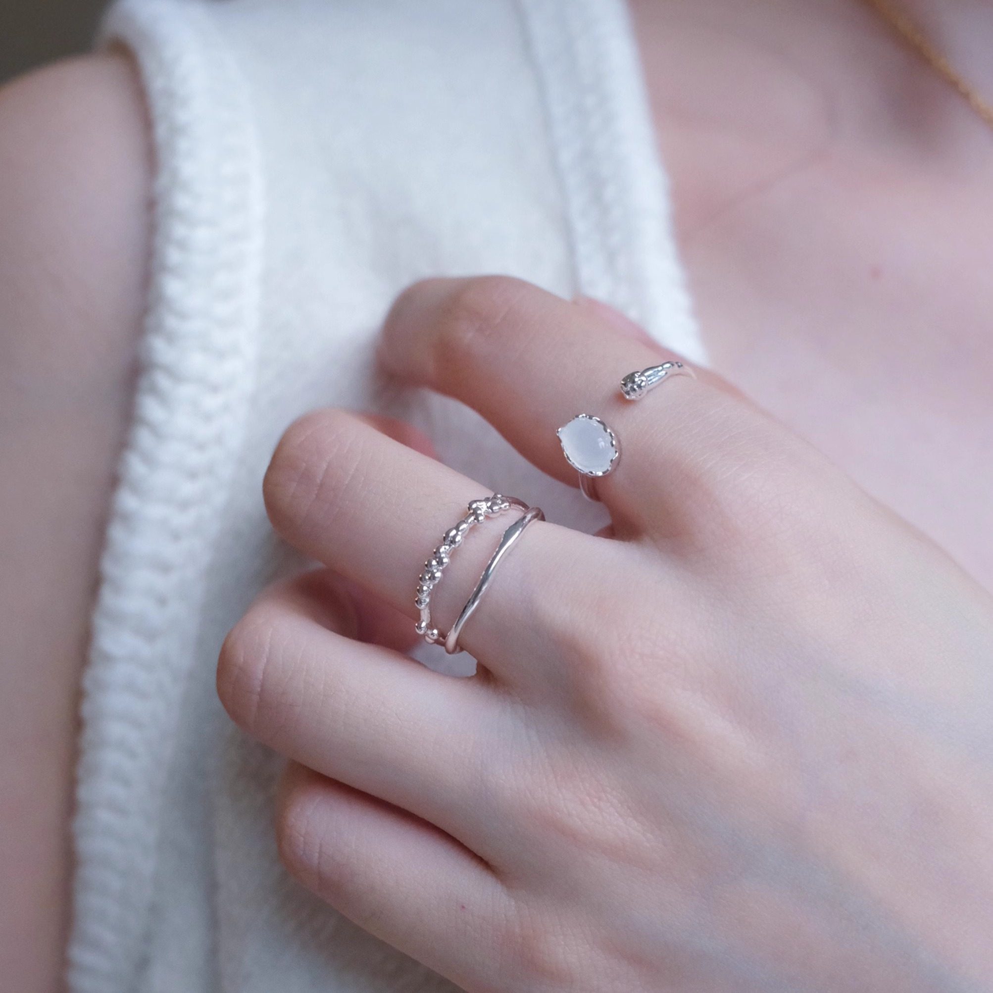 《白雾岛》精致轻奢简约小众冷淡风蛋白石双层银色金属戒指可调节