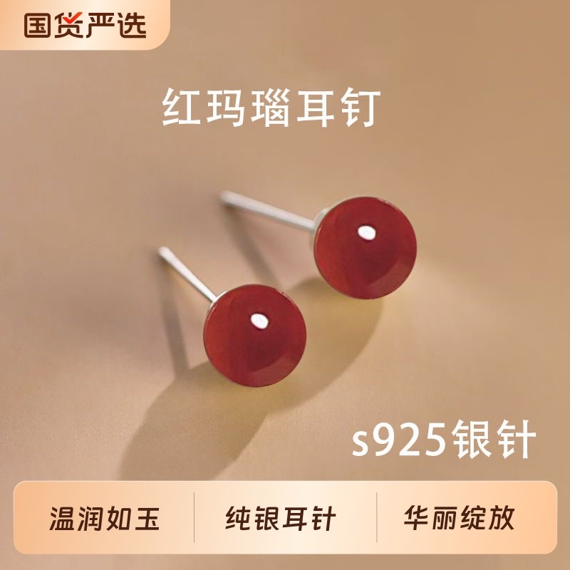 喜庆红玛瑙s925银耳钉女士气质高级感耳环新款爆款本命年纯银耳饰