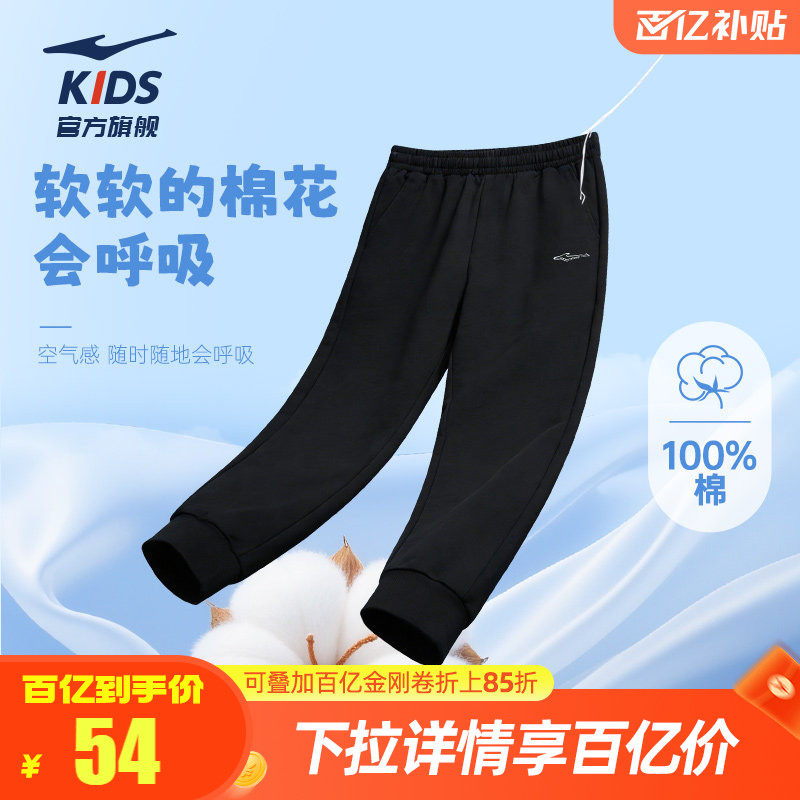 鸿星尔克童装运动裤男童长裤春季新款中大童裤子春秋纯棉女童卫裤