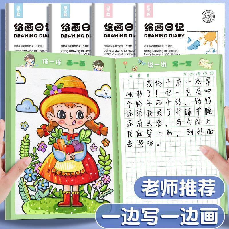 SENMU创意卡通少儿绘画日记B5车线学生绘画本拼田田字日记本