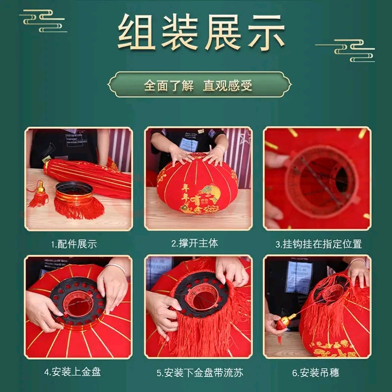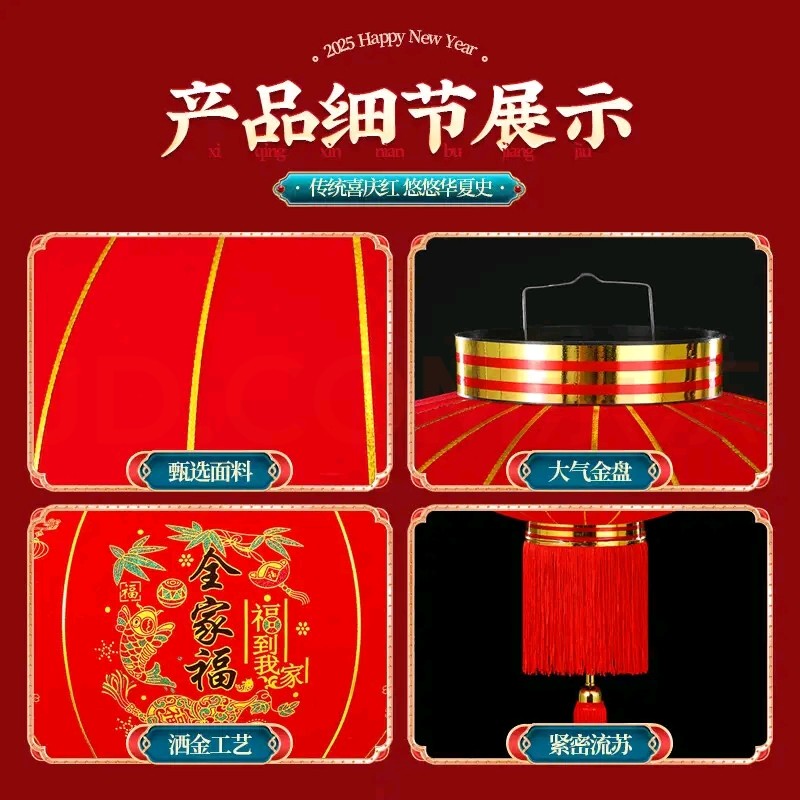 新款大红灯笼过年大门口植绒红灯笼春节新年装饰灯笼一对太阳能