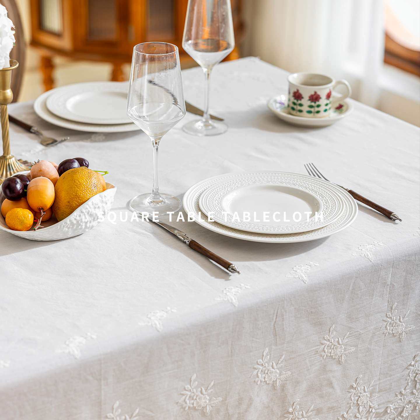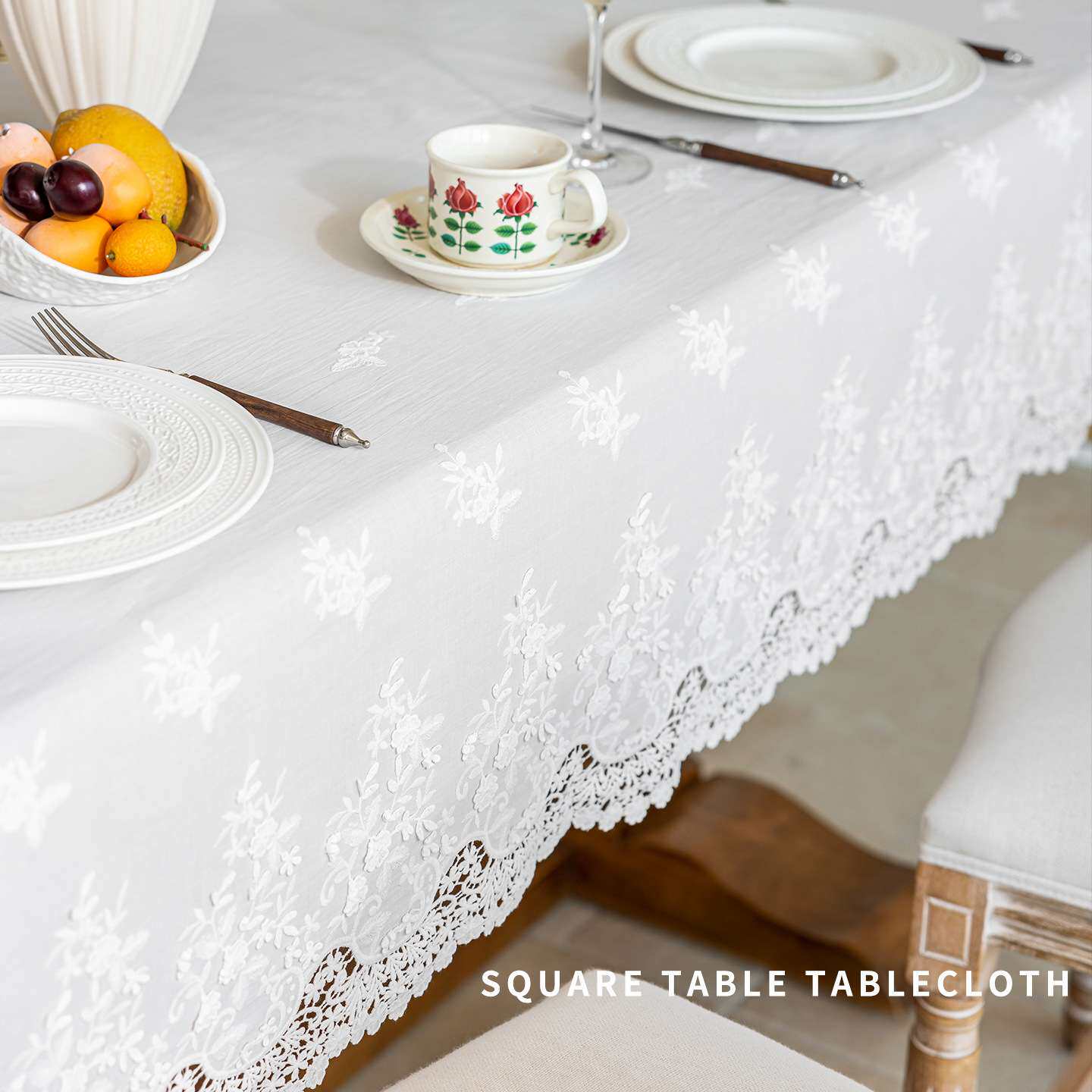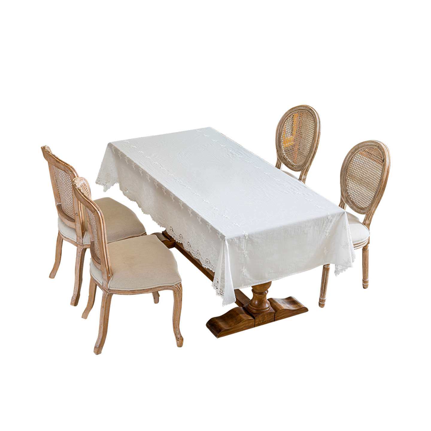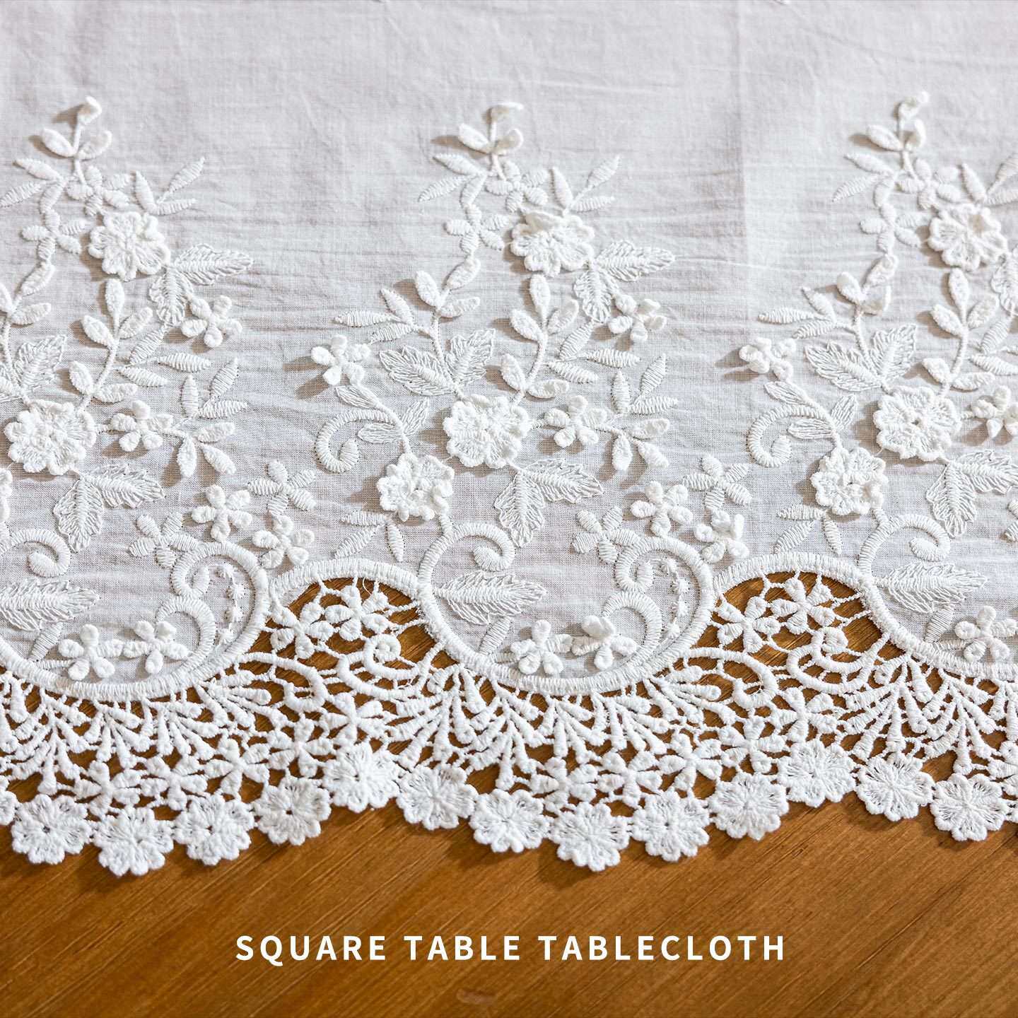 小白鼠家饰家居田园风纯棉方桌桌布镂空花边餐桌桌布家用美观桌布