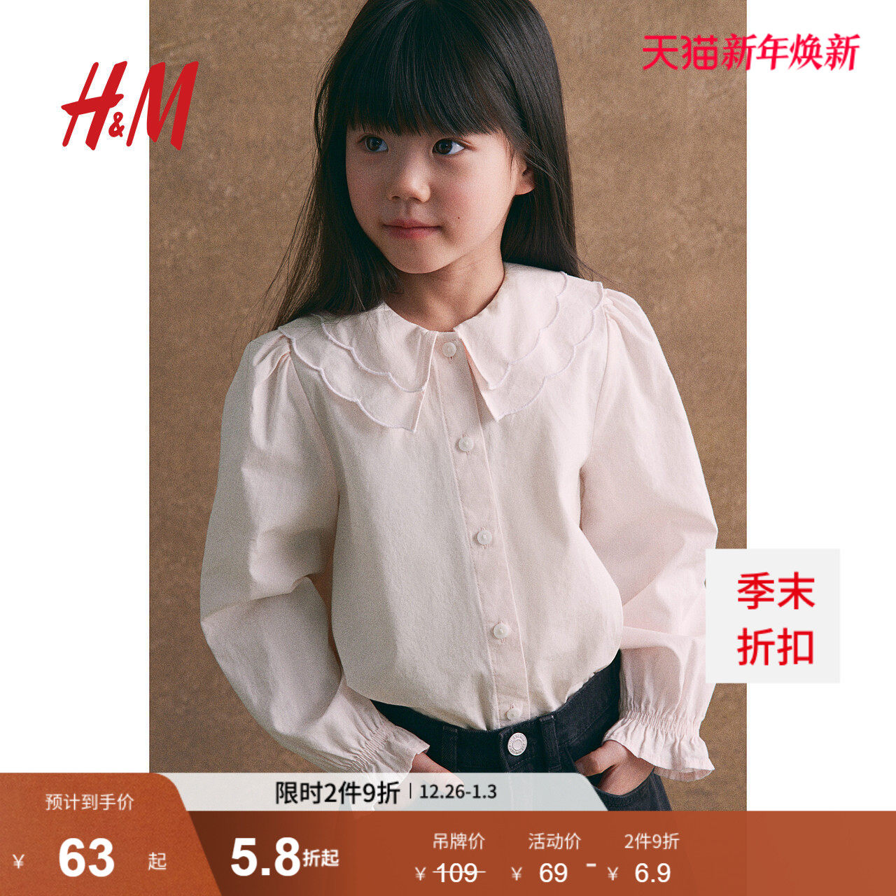 HM童装儿童女童衬衫2025冬新款娃娃脸泡泡长袖棉府绸上衣1265192