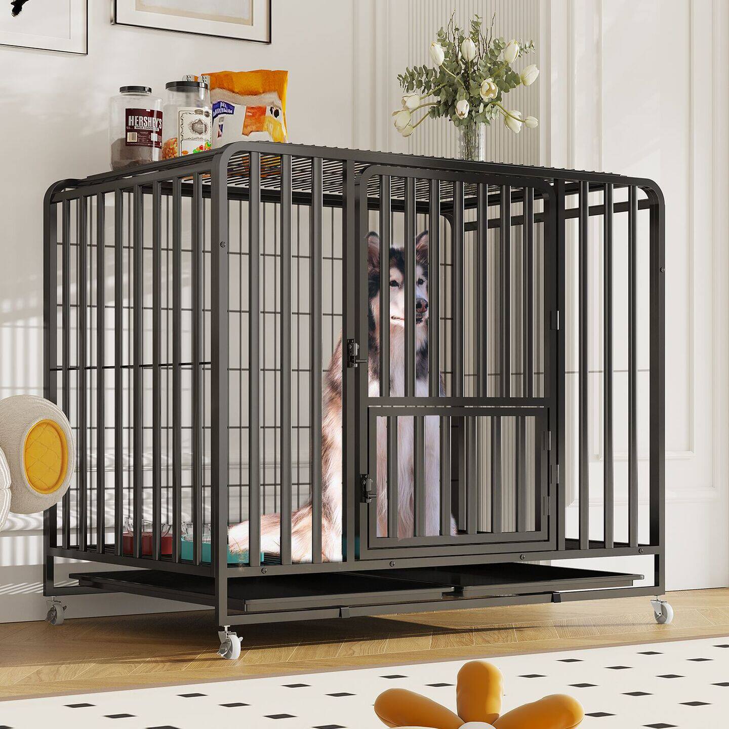 狗笼子中大型犬家用室内外带厕所六面加固方管宠物笼金毛边牧狗笼